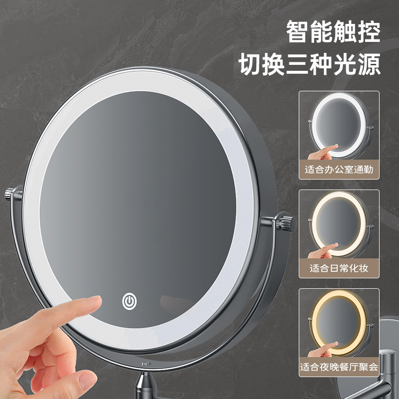 带灯化妆镜伸缩镜浴室卫生间折叠镜子壁挂酒店免打孔放大高清镜前