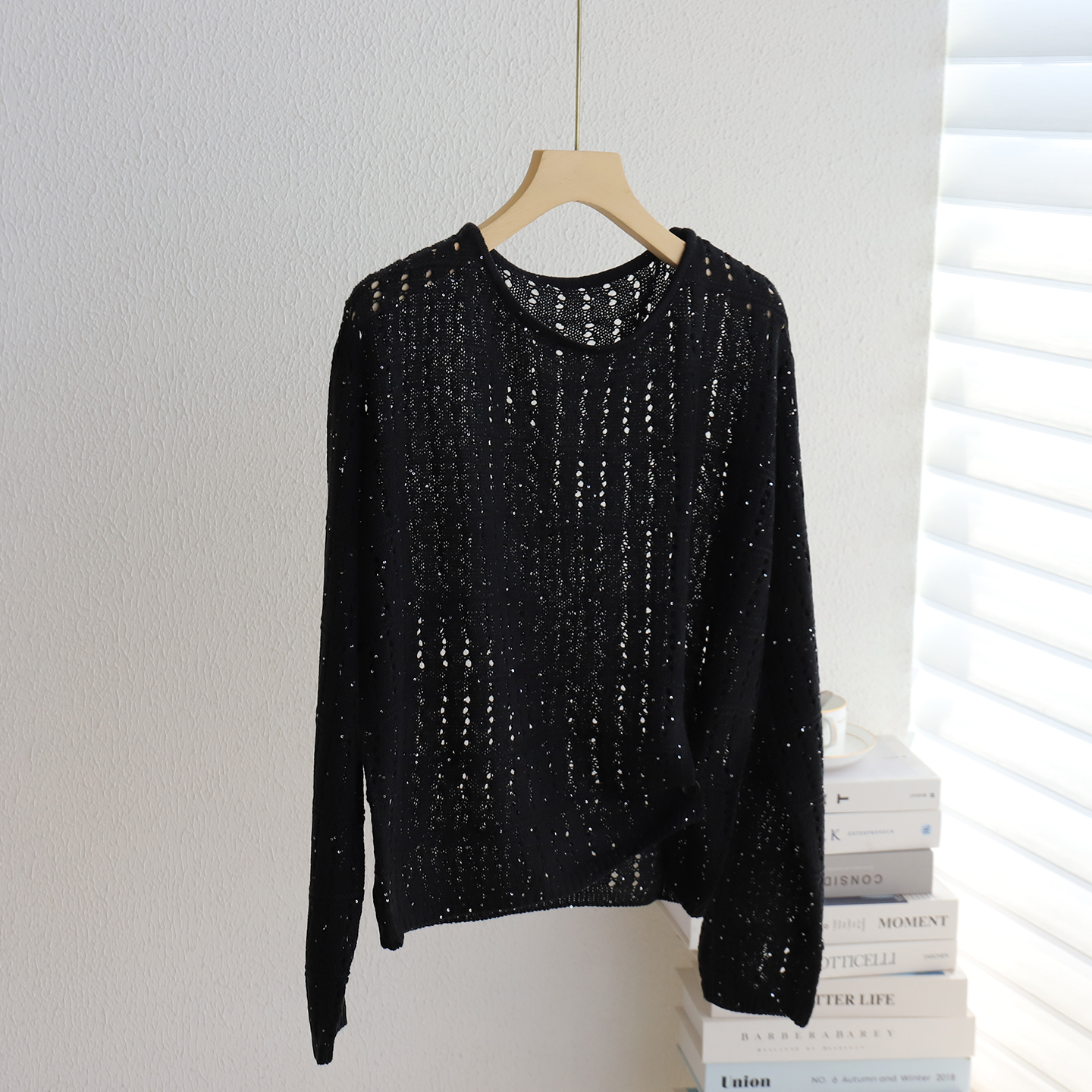 外套女2025早秋新款 套头外穿罩衫 韩版 百搭长袖 上衣 时尚 镂空针织衫