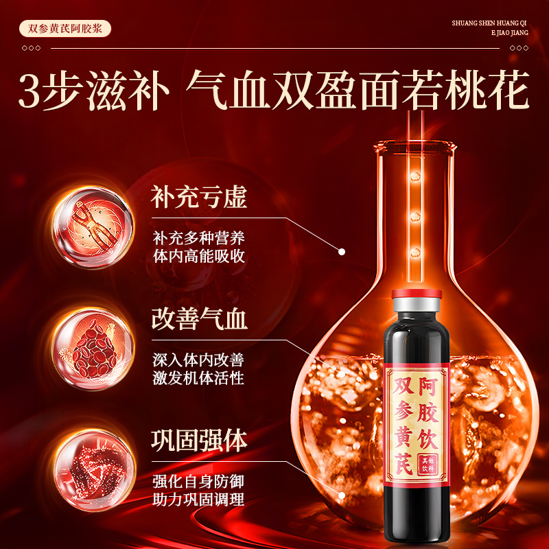 阿胶黄芪口服液浆女生男士 补气养血调理不足改善贫补铁旗舰店气血