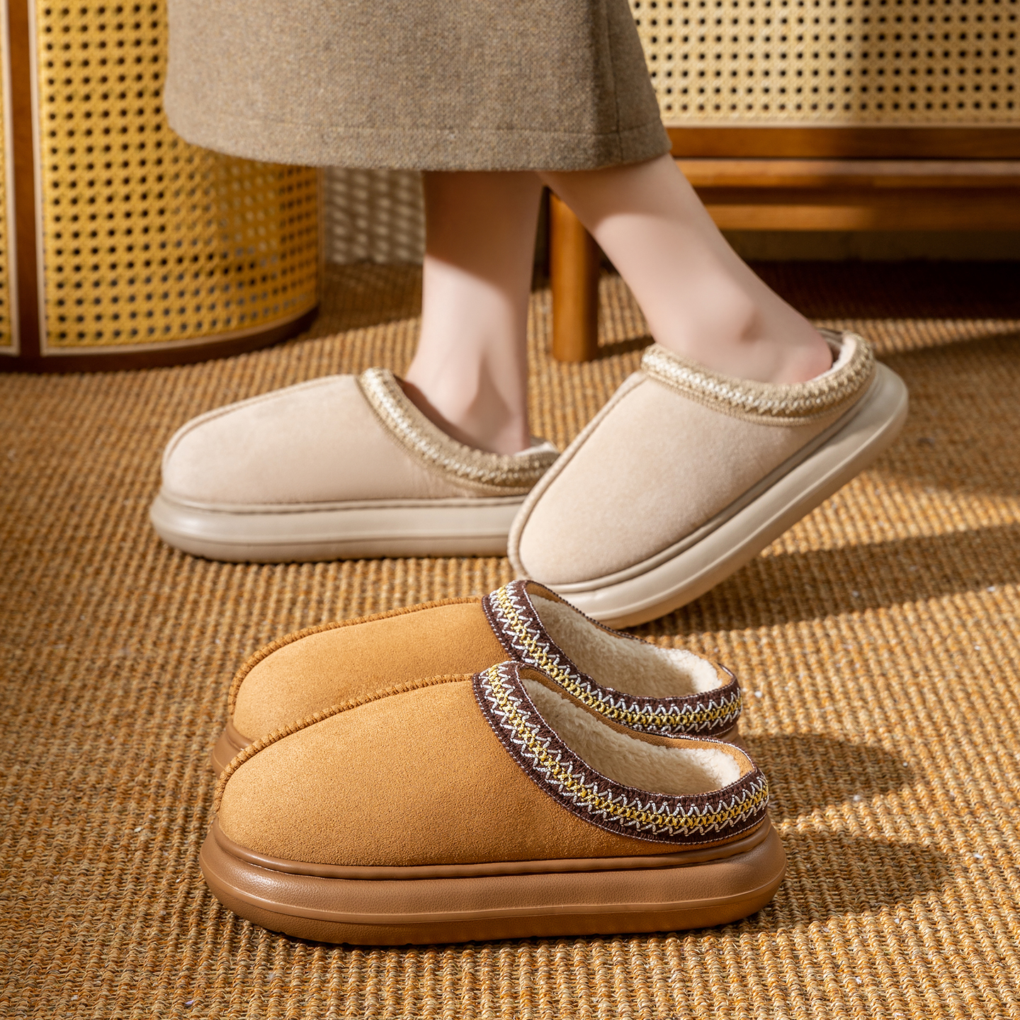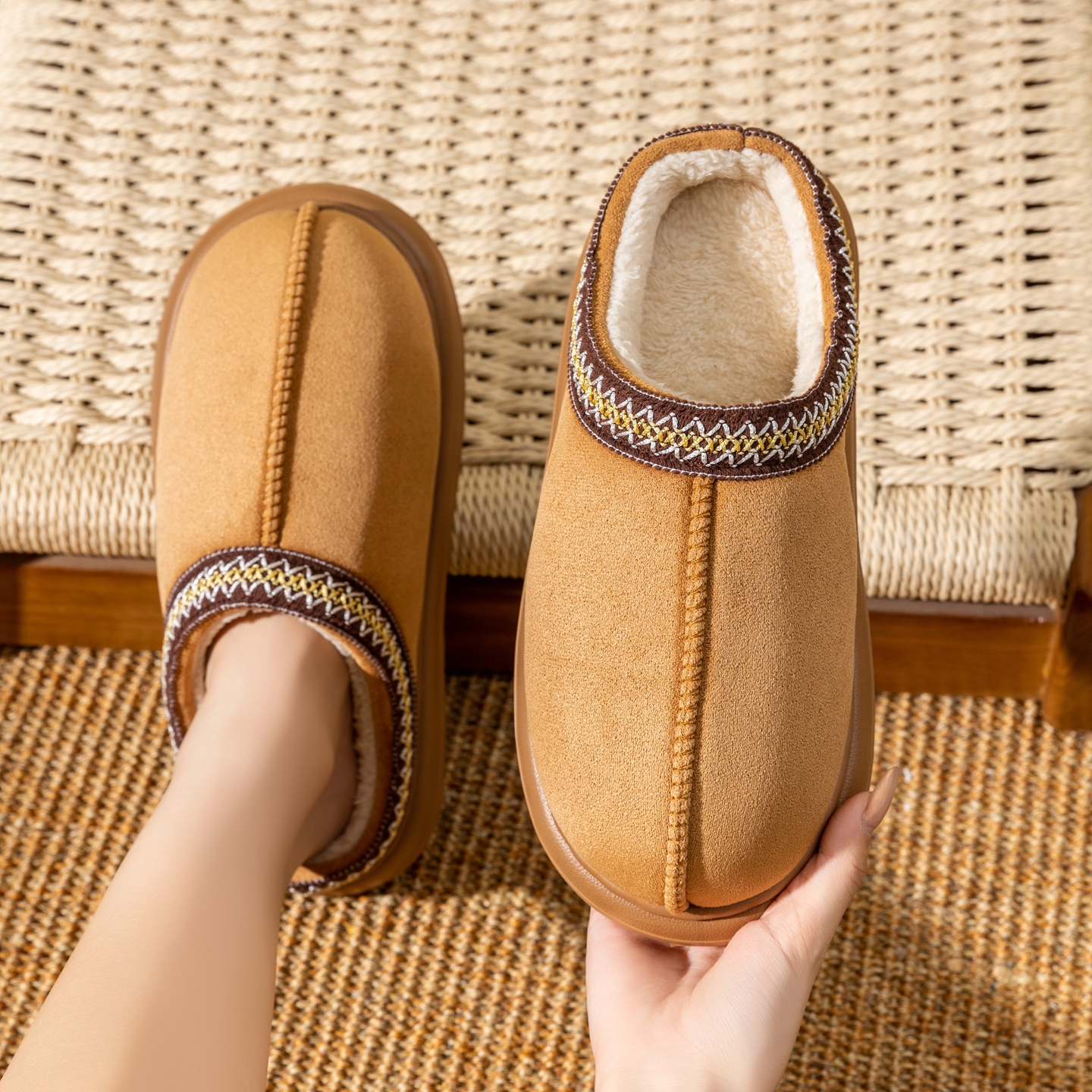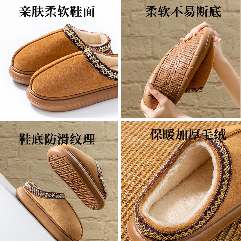 室内厚底拖鞋 2025新款 居家用保暖加绒男士 女秋冬季 家居毛绒棉拖鞋