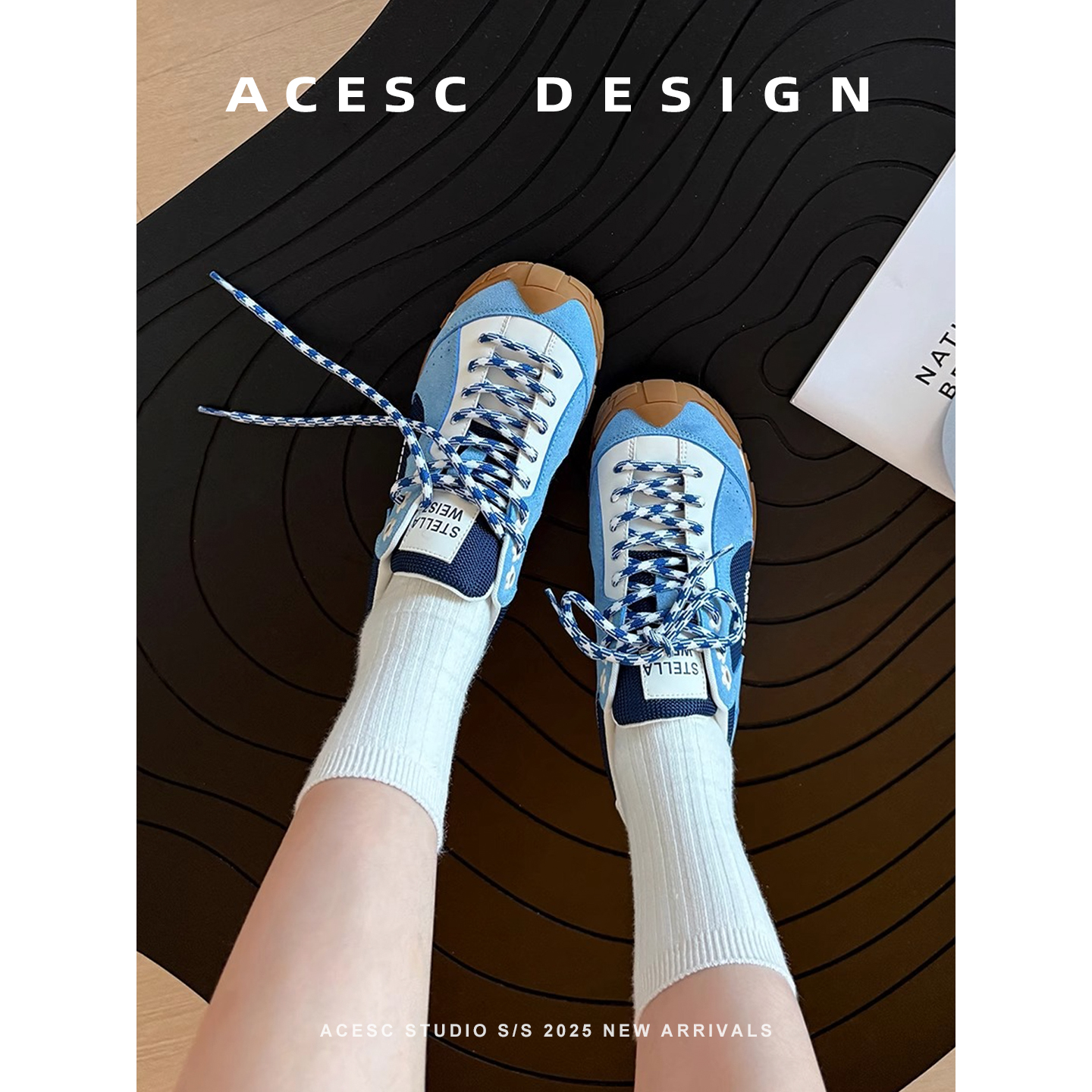 透气百搭休闲运动慢跑鞋 2025新款 女厚底小花流浪鞋 复古阿甘德训鞋