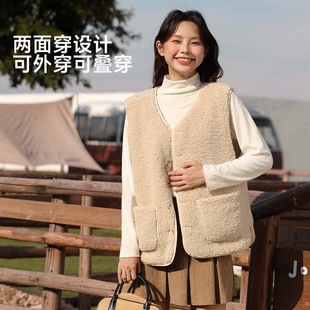 班尼路两面穿马甲女2025新款 羊羔绒保暖圆领外套背心上衣M 秋冬季