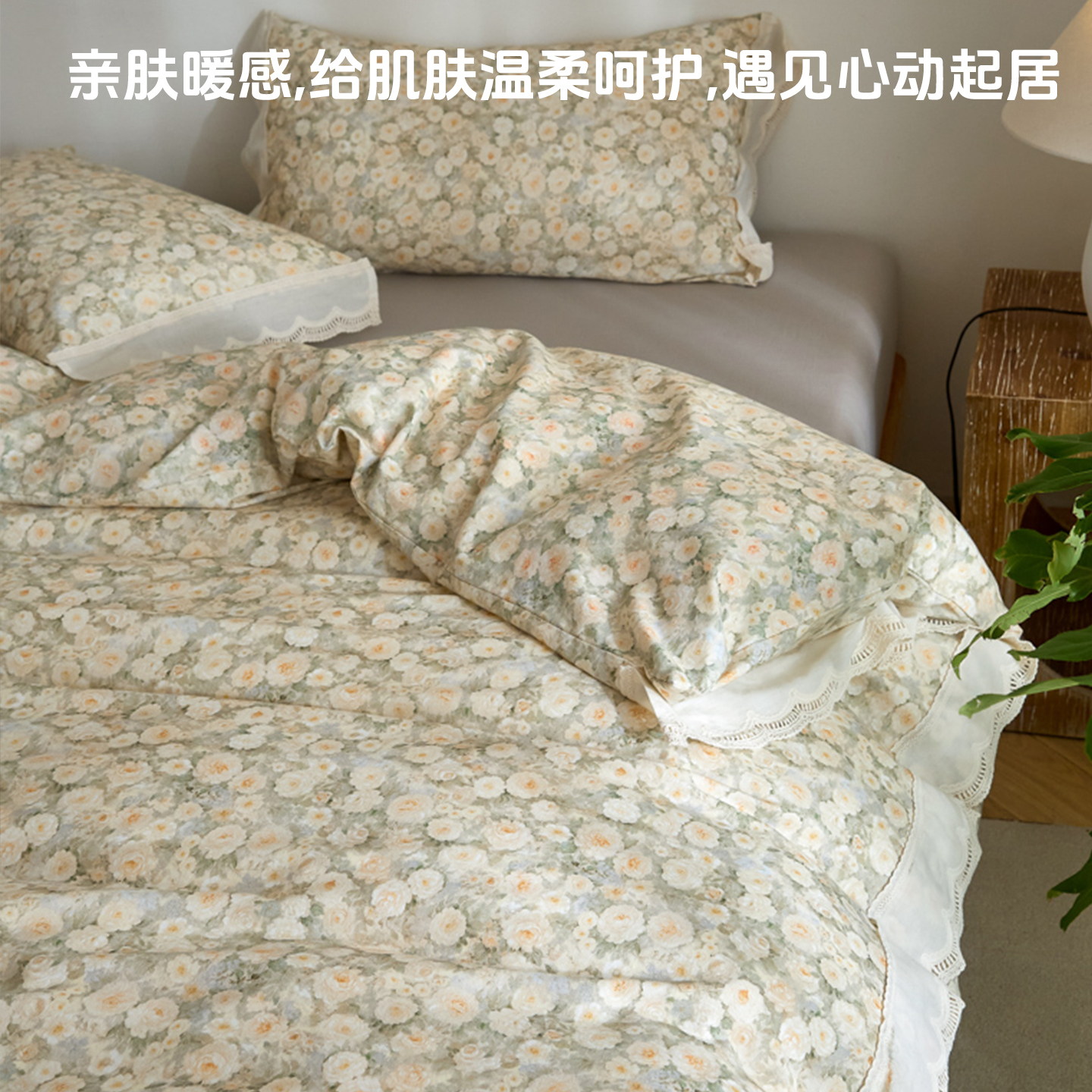 秋冬加厚保暖全棉水洗磨毛浪漫蕾丝花边纯棉四件套100棉公主风1.8