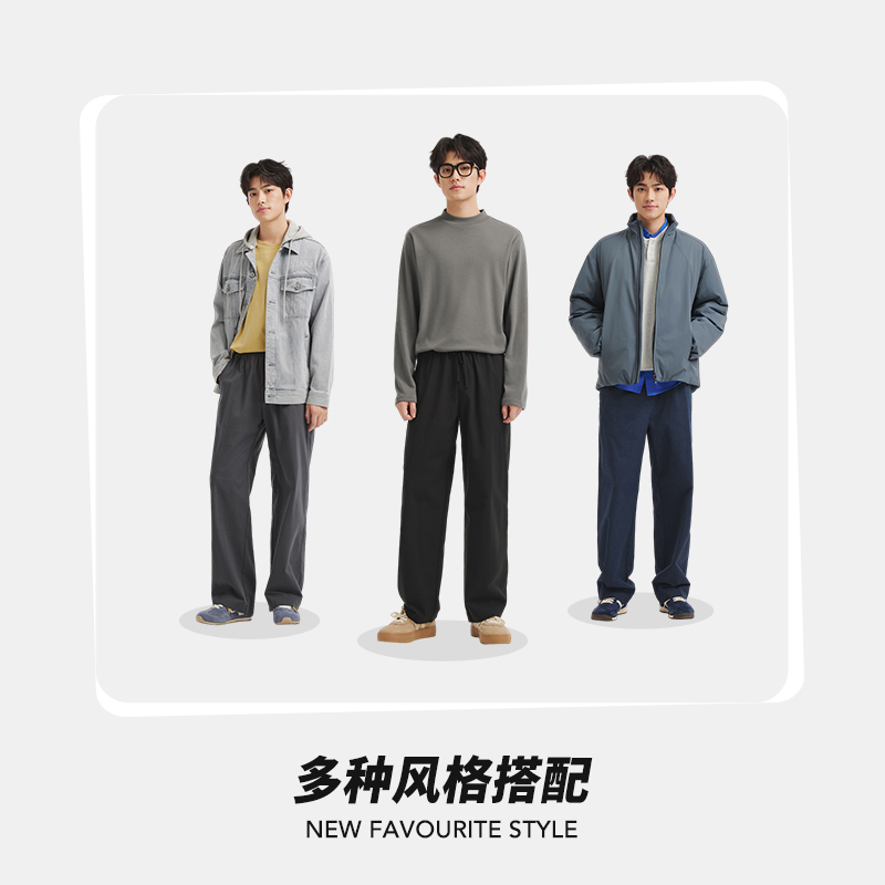 松紧腰舒服百搭通勤深色长裤 热风男士 新款 2025年秋季 直筒宽松长裤