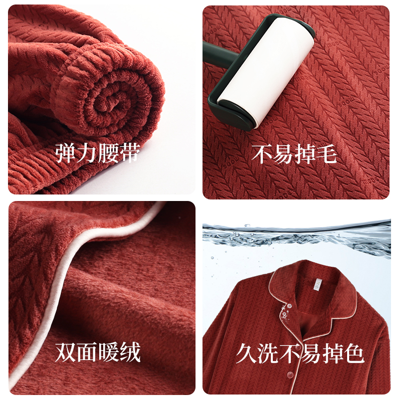大码 春秋开衫 女士家居服 加厚珊瑚绒睡衣女冬法兰绒加绒套装 秋冬季