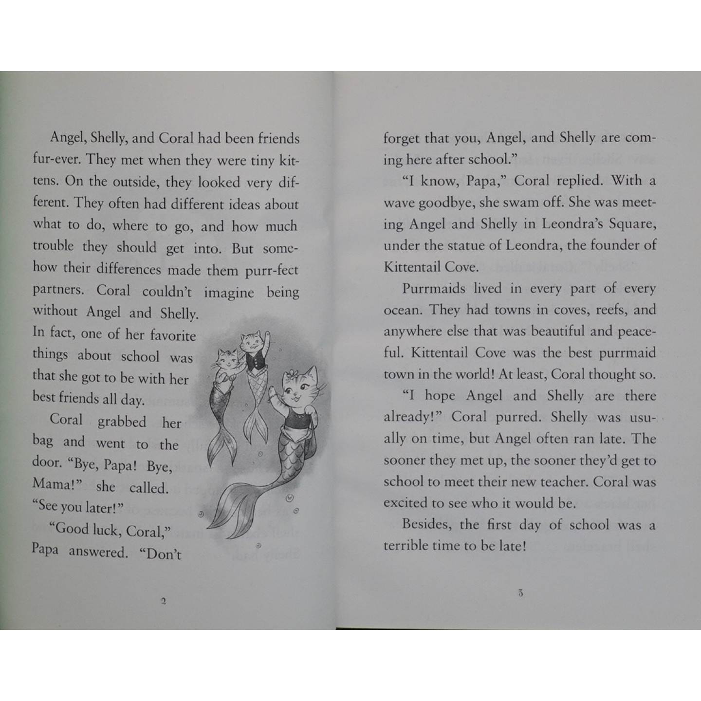 英语原版 友谊故事帮助孩 引进猫咪美人鱼系列TheScaredyCat奇幻冒险绘本适合710岁儿童阅读讲述珊瑚雪莉和安吉尔三位猫咪美人鱼