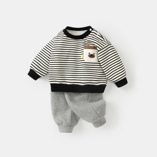 男童秋冬加绒外穿上衣裤 分体两件套卫衣卫裤 子 秋装 男宝宝2025新款