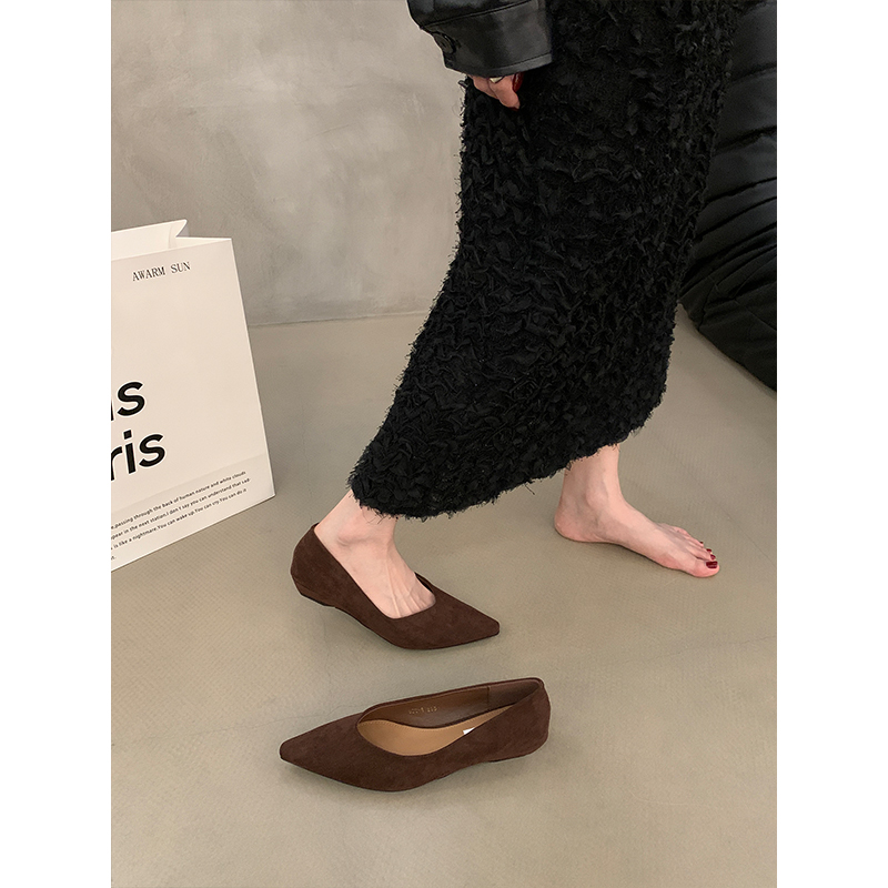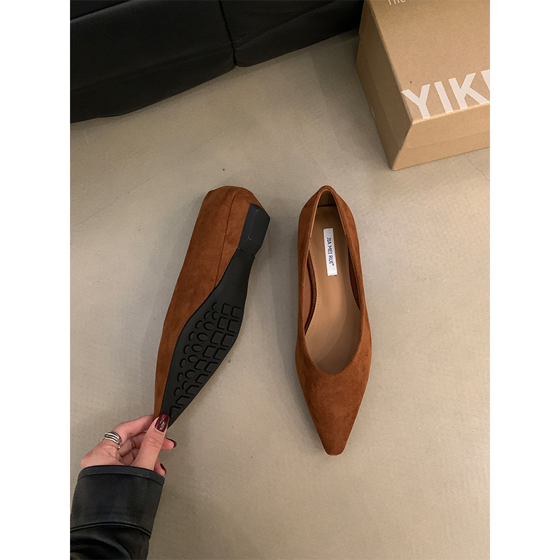 绒面气质一脚蹬通勤鞋 复古低跟尖头浅口单鞋 春秋季 子2025新款 女鞋