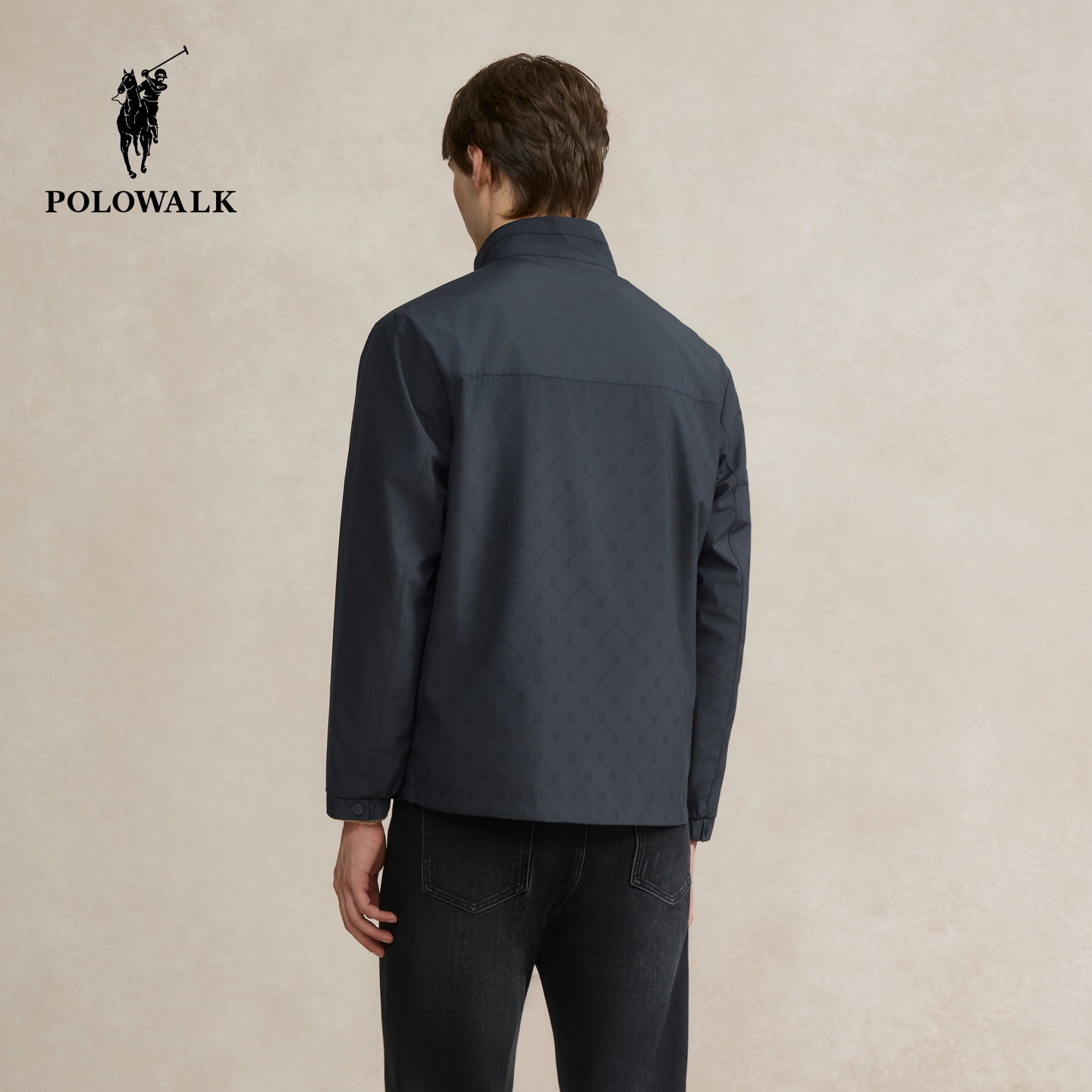太平鸟男装 立体提花行政夹克秋翻领商务休闲茄克外套青年黑色上衣