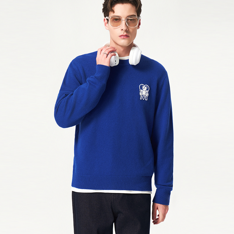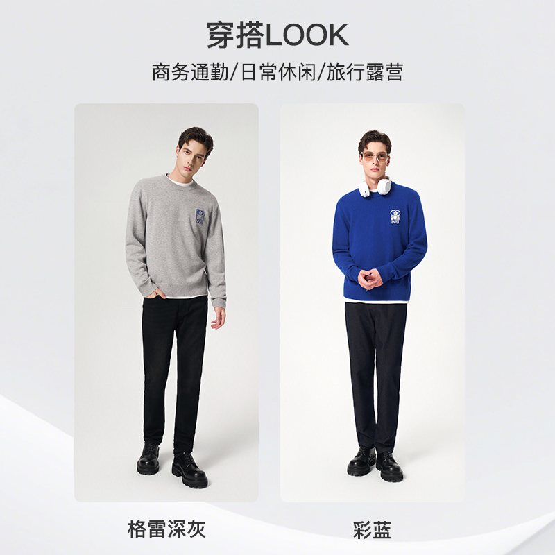 100%羊毛 秋冬时尚 劲霸男装 针织衫 毛衣圆领套头羊毛衫 男士