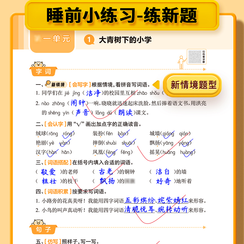 易蓓小学语文背记清单睡前默写同步专项训练人教版 课本生字词语古诗文考点大全一二三四五六年级上下册考点梳理课堂预复习教辅资料