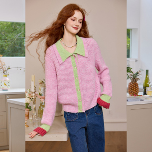 粉色温柔开衫 新款 毛衣外套 上衣女2025秋冬季 阔色多巴胺搭配针织衫
