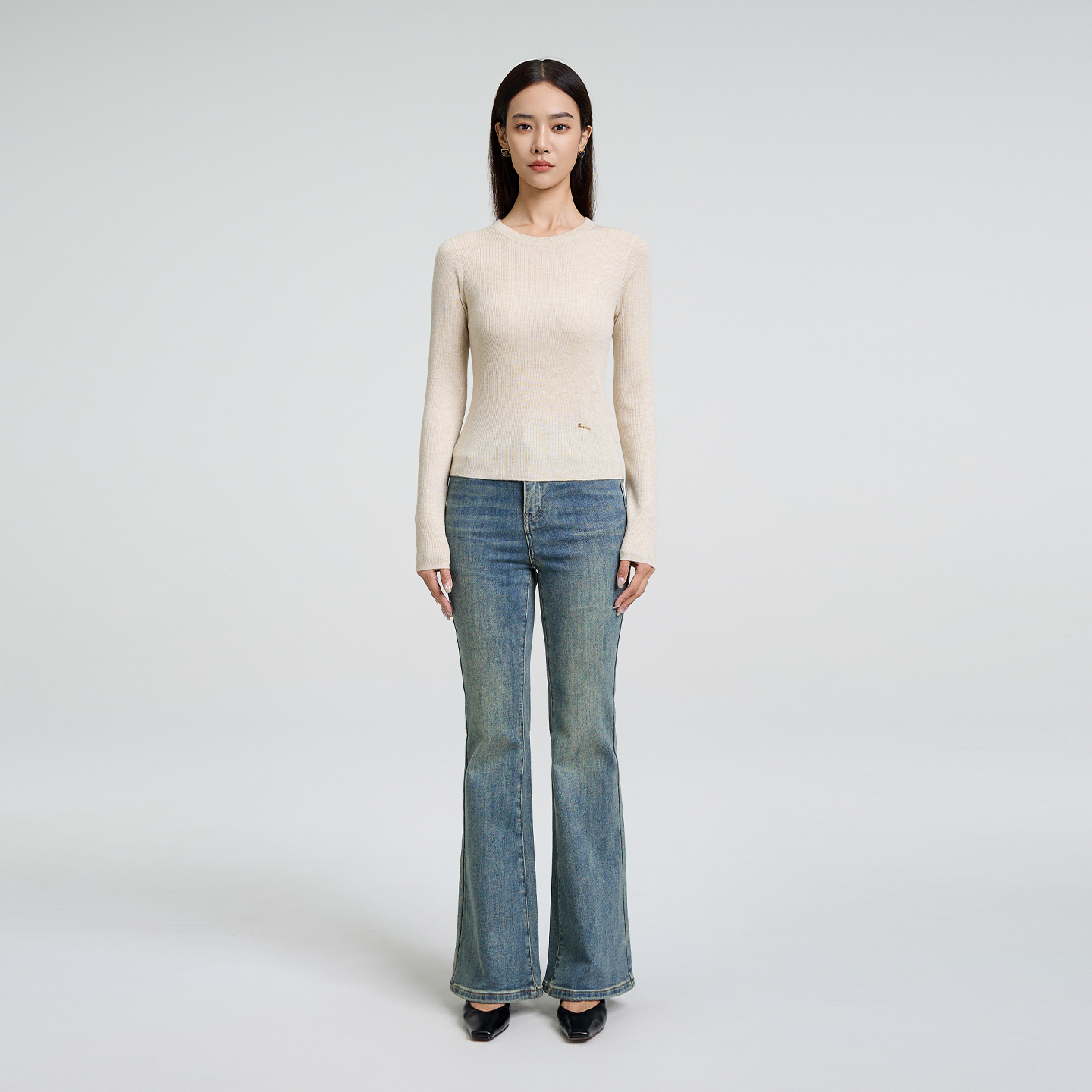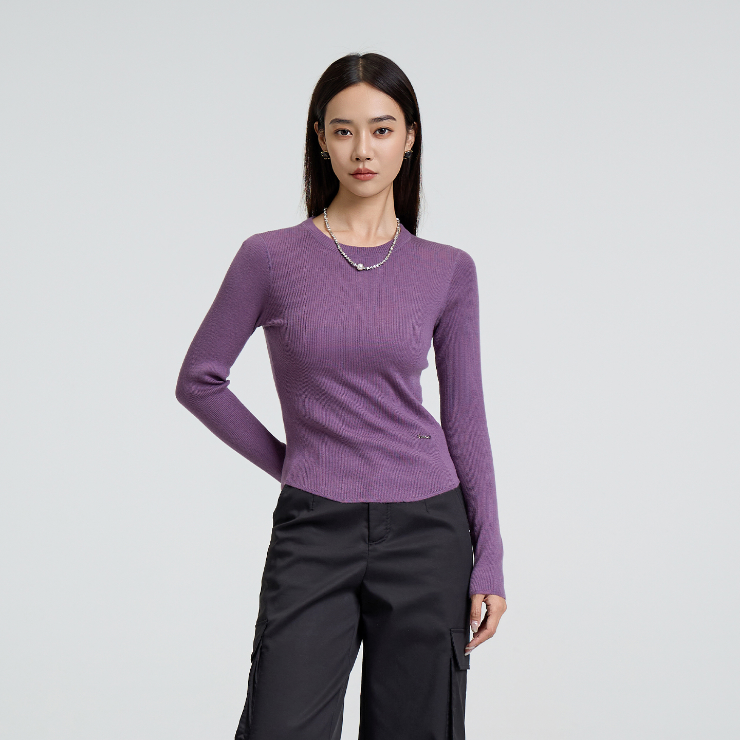 女长袖 高级感一线成衣圆领毛衣秋冬女内搭无缝修身 显瘦针织打底衫