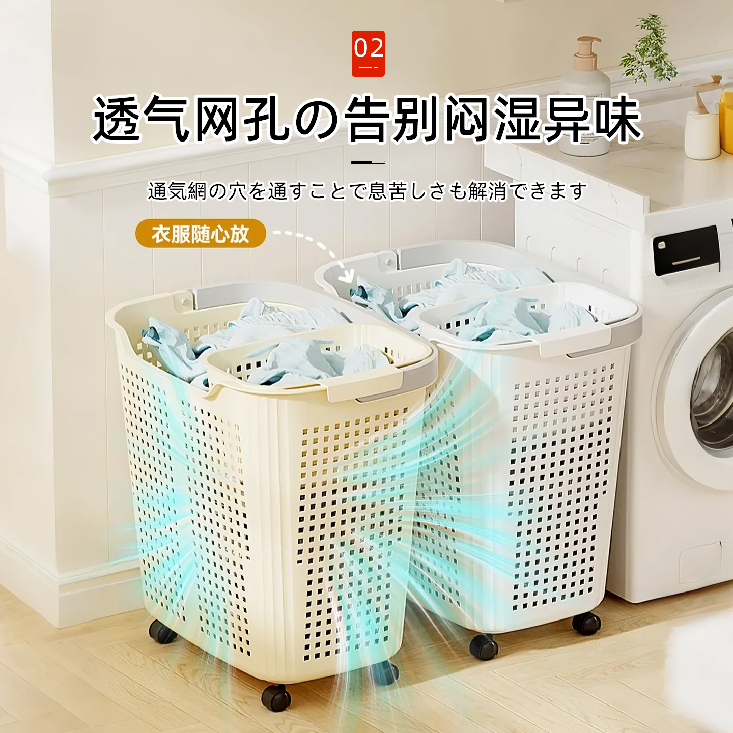 日本脏衣篓带轮家用高颜值轻奢脏衣篮收纳筐大容量分类卫生间浴室