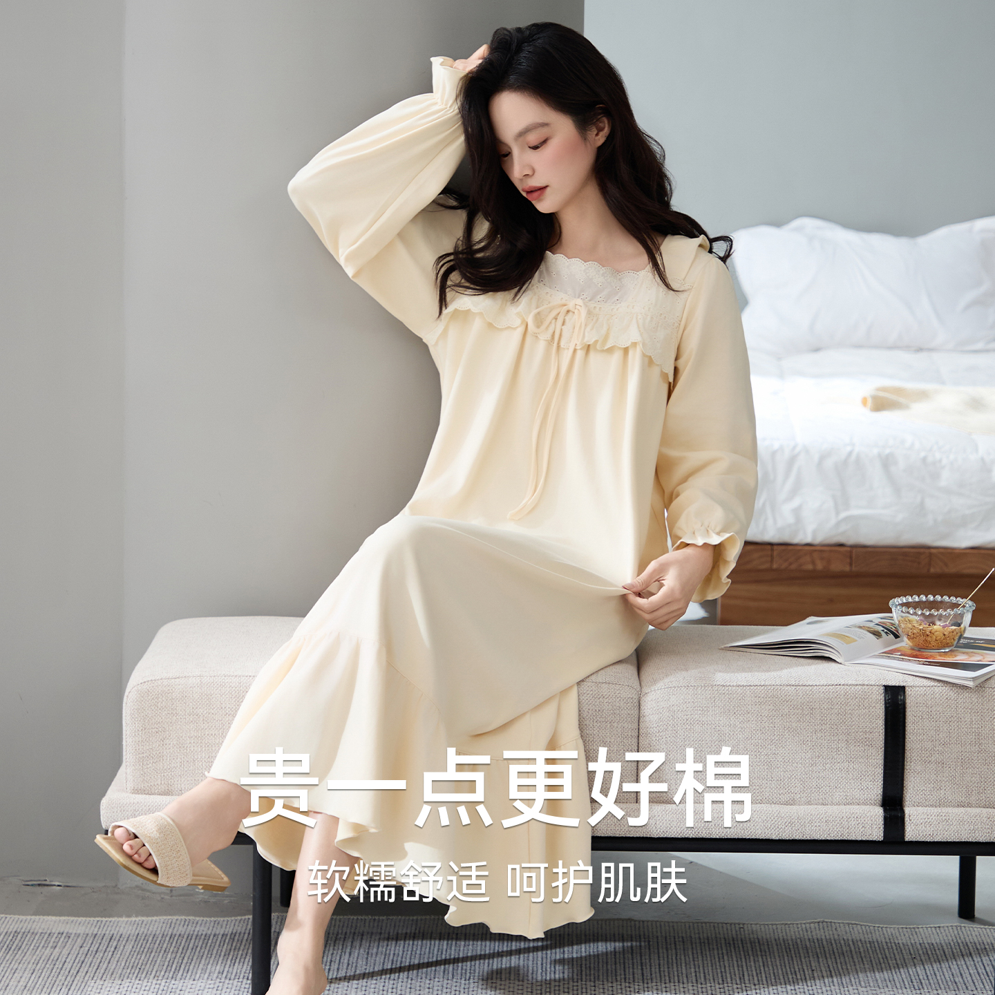 幸棉法式 睡裙女秋超仙睡衣家居服露背高级感连衣裙宽松长裙子 长袖