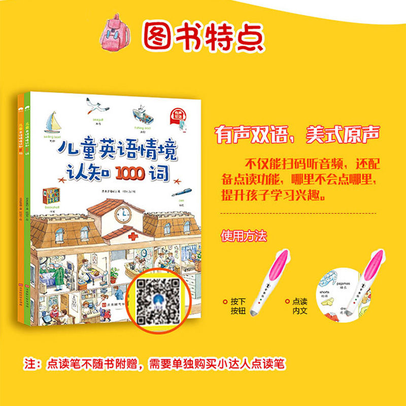 小达人点读笔配套书儿童英语情境认知1000词 300句儿童英语单词零基础入门小学生认知图解看图学英语幼儿英文启蒙自然拼读阅读图书