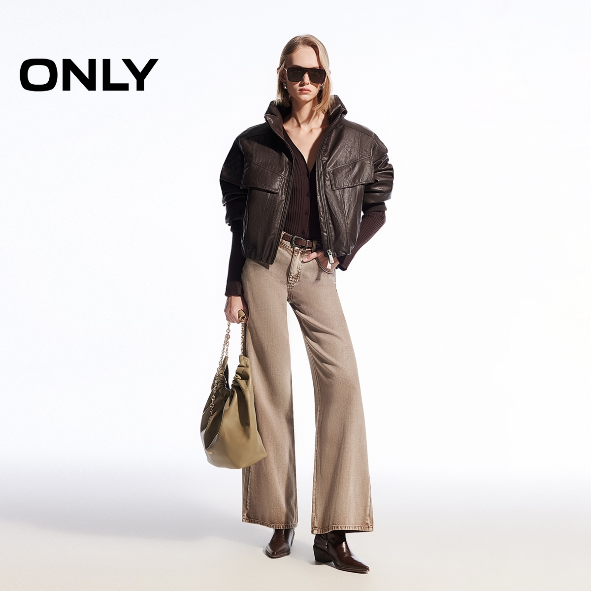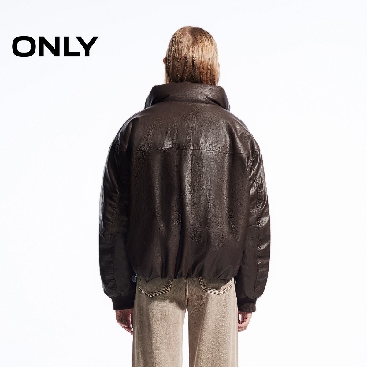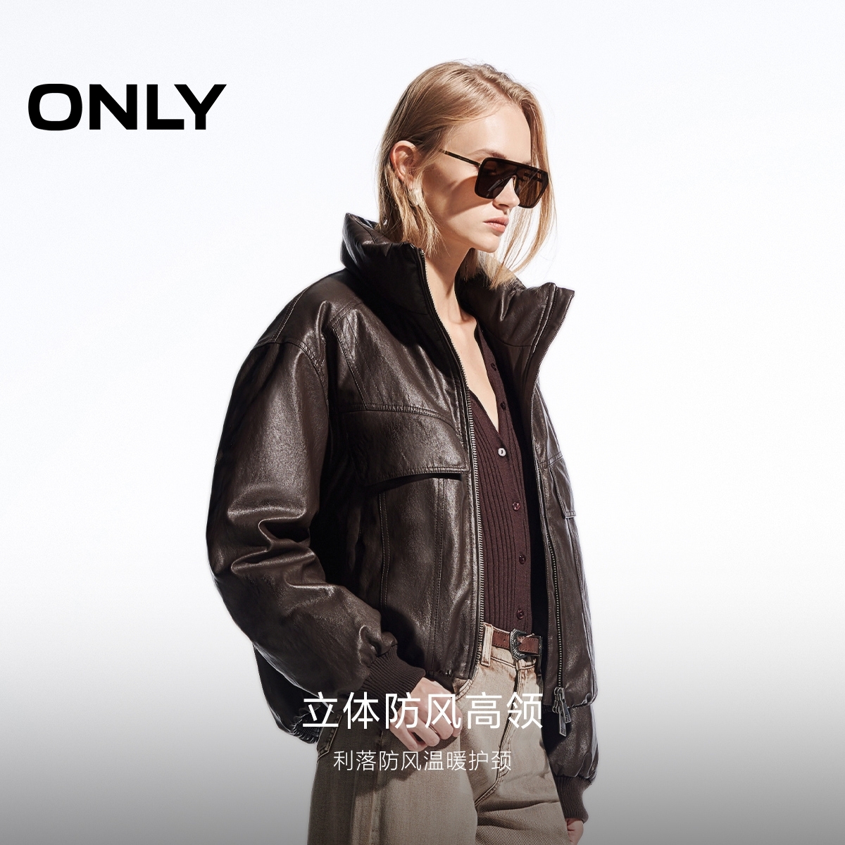 ONLY2025冬季 「琥珀流光风」90白鸭绒复古做旧立领PU羽绒服女 新款