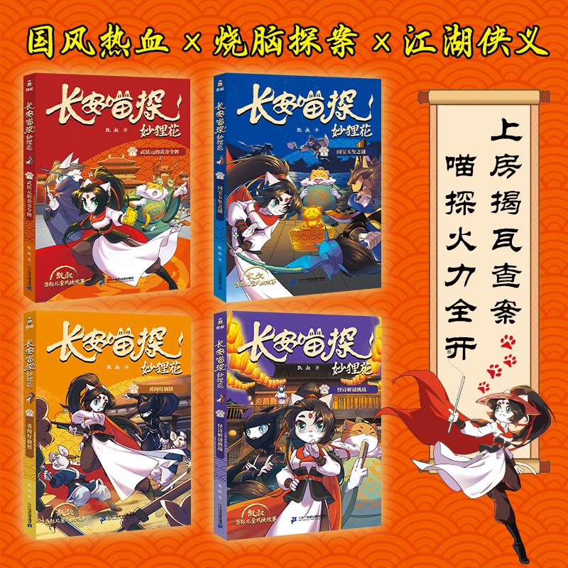 全4 第一辑 黄金令牌 长安喵探妙狸花 凯叔 图画书 勇闯灯油镇 绘本 怪诗解谜挑战 少儿动漫书少儿 武状元 著 国宝玉玺之谜
