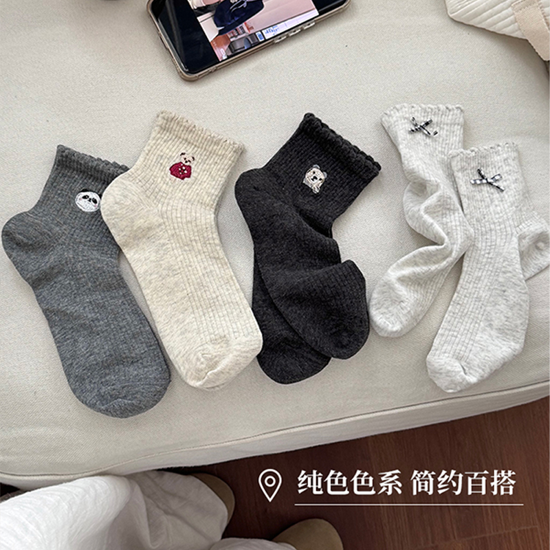 秋冬女袜2025新款 中筒袜女士袜子 粉色可爱少女卡通棉袜搭配小皮鞋
