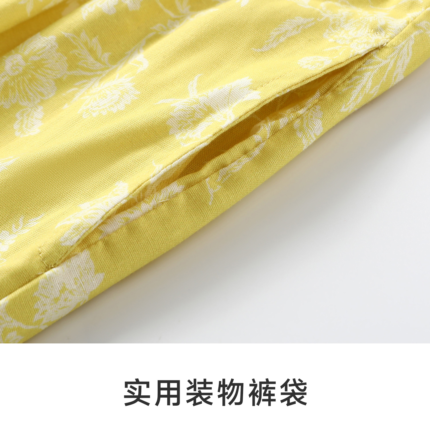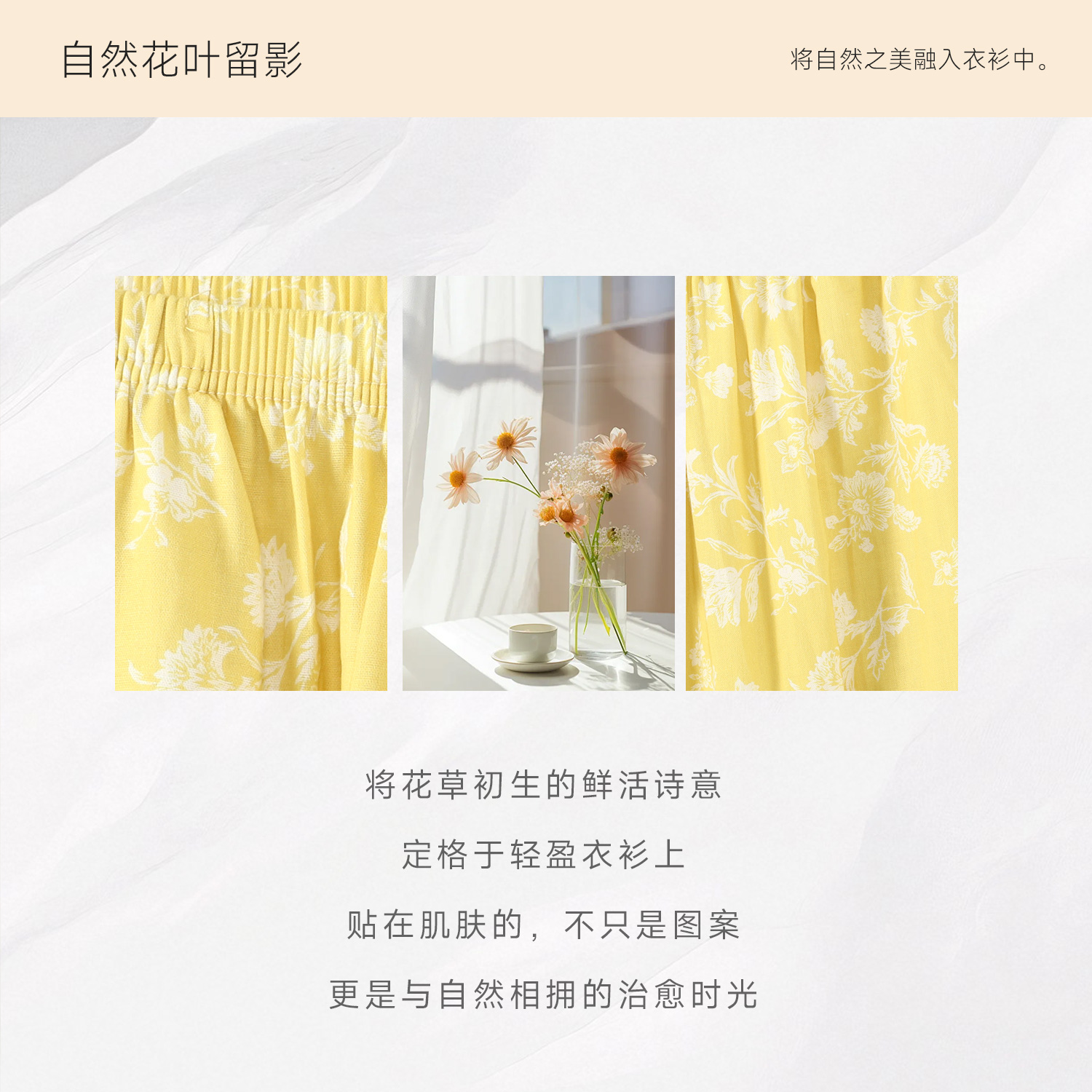 子 100纯棉单裤 新品 秋鹿柔软舒适双层纱印花家居服女25秋冬女睡裤