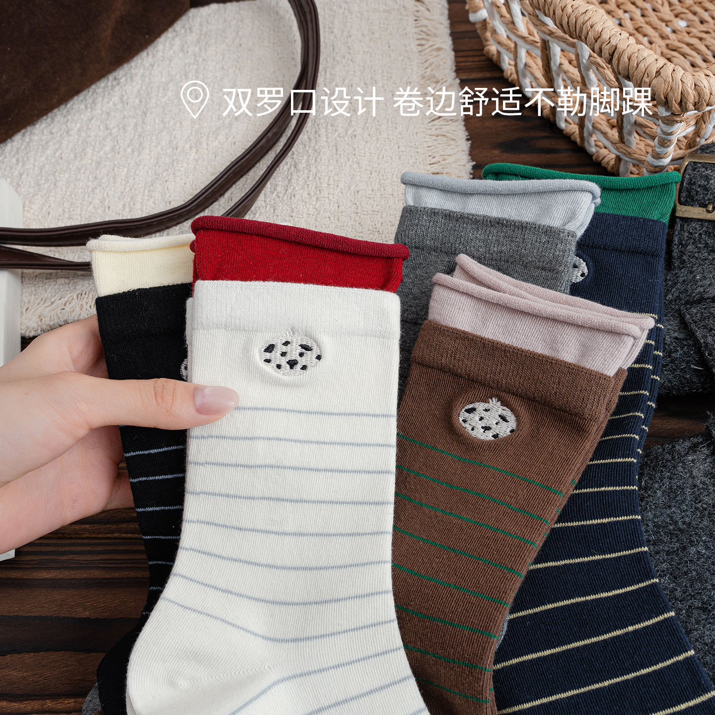 卷边月子袜长筒袜 纯棉女士堆堆袜秋冬款 白色袜子女款 中筒袜春秋季