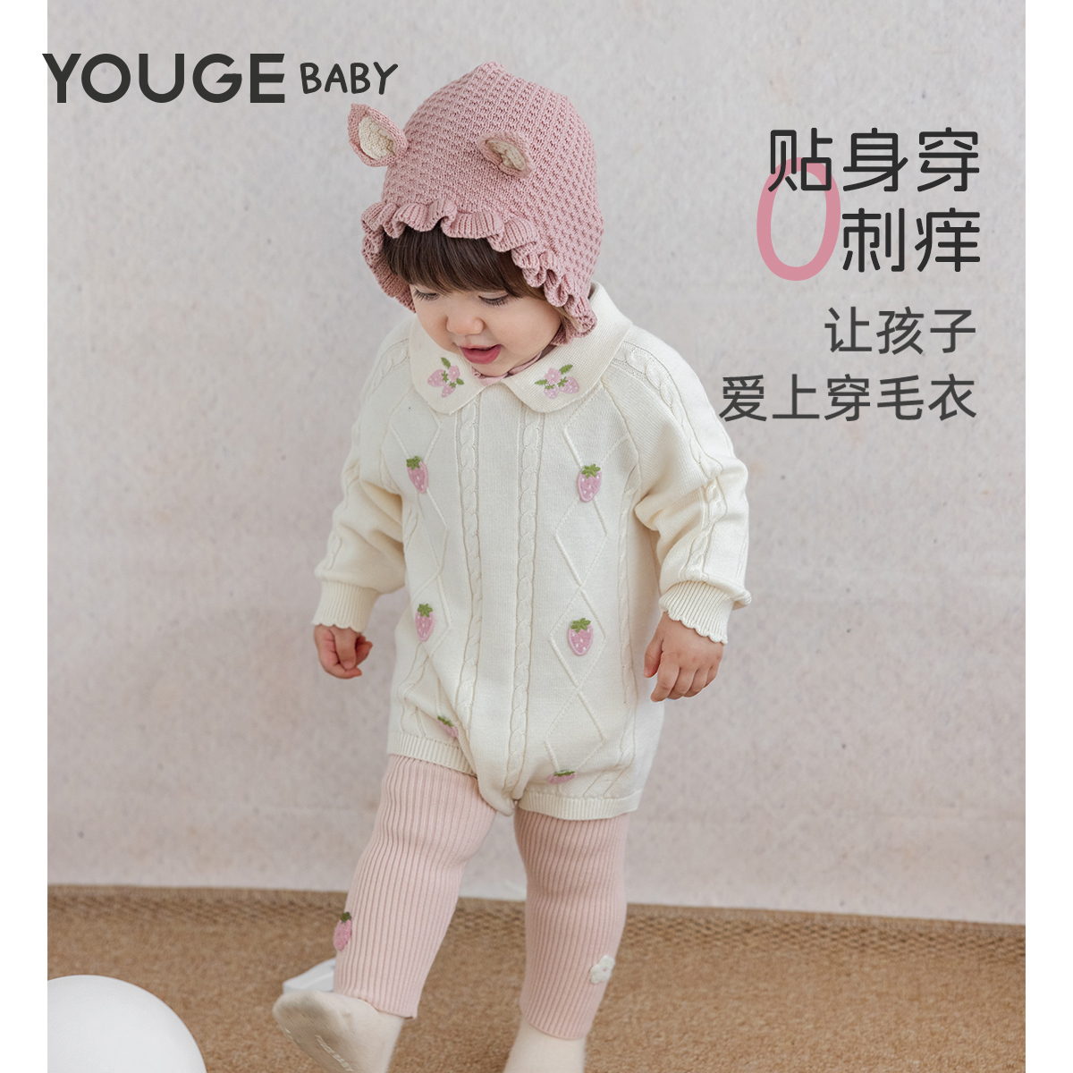 套装 YOUGE幼歌 草莓毛衣爬服女宝宝柔软舒适打底裤 新款 婴幼儿秋季