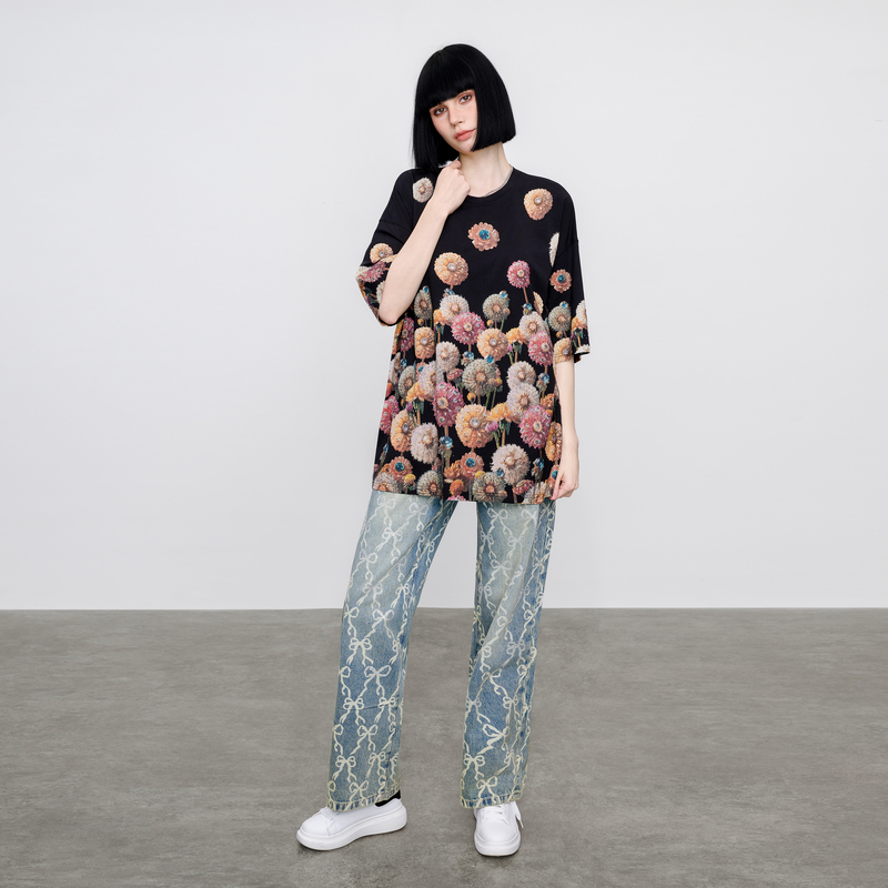 短袖 宽松加肥加大胖子休闲男装 t恤男士 潮牌满印半袖 夏季 摩朝大码