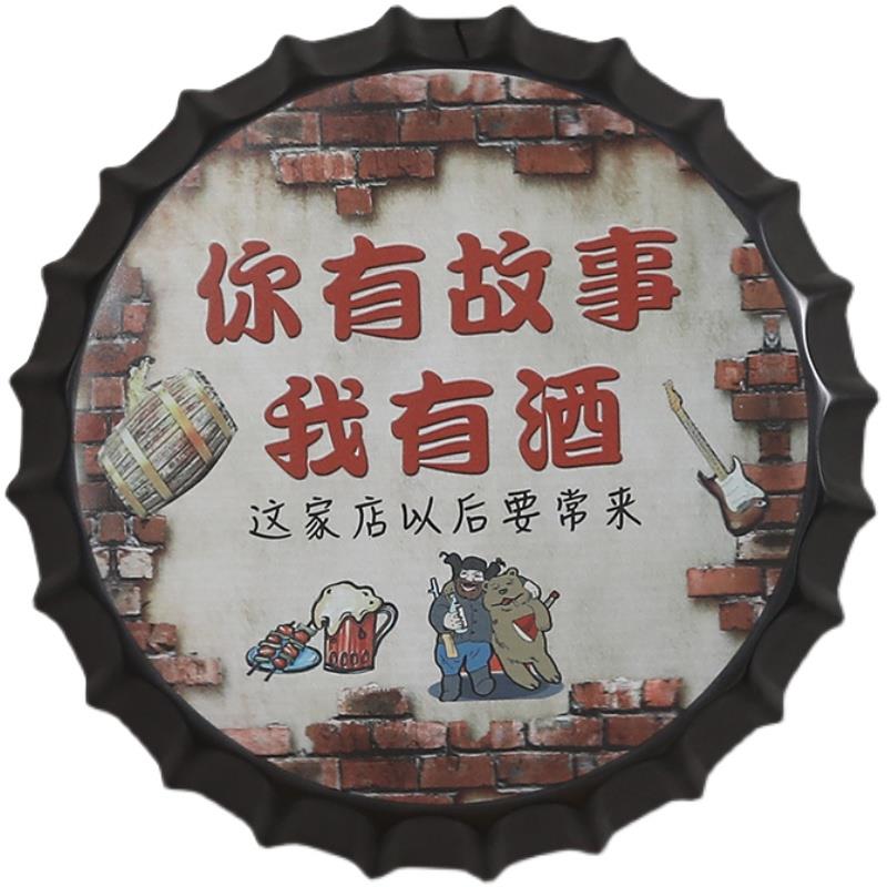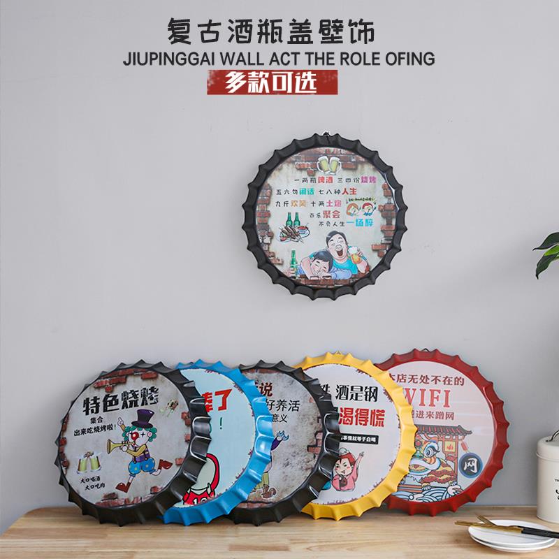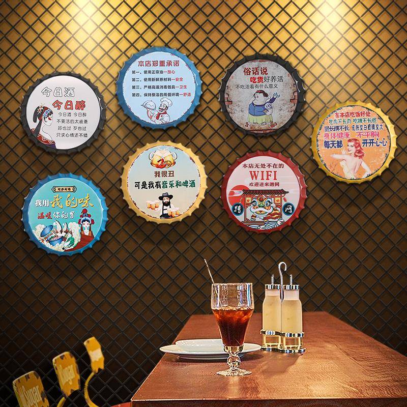 创意酒吧烧烤店铺餐饮墙面装 饰挂件复古背景墙啤酒瓶盖铁皮画壁挂