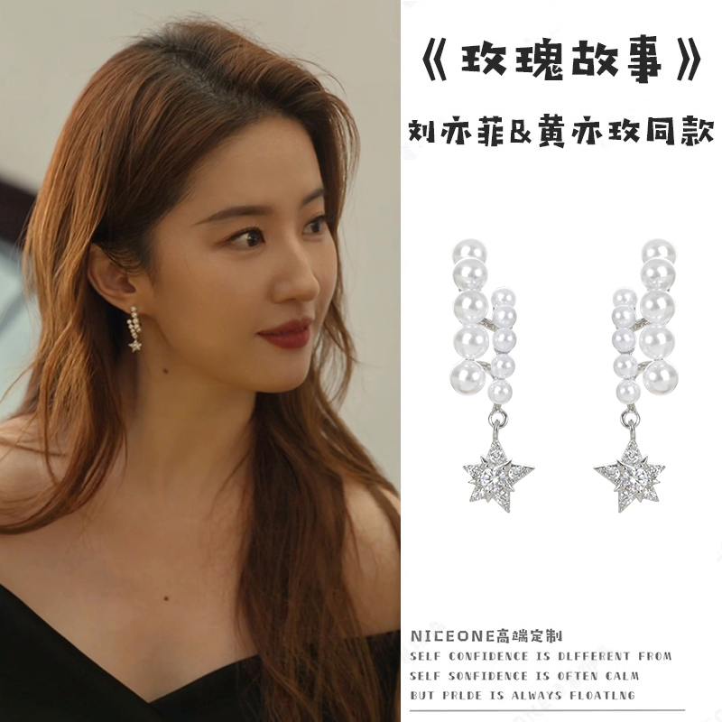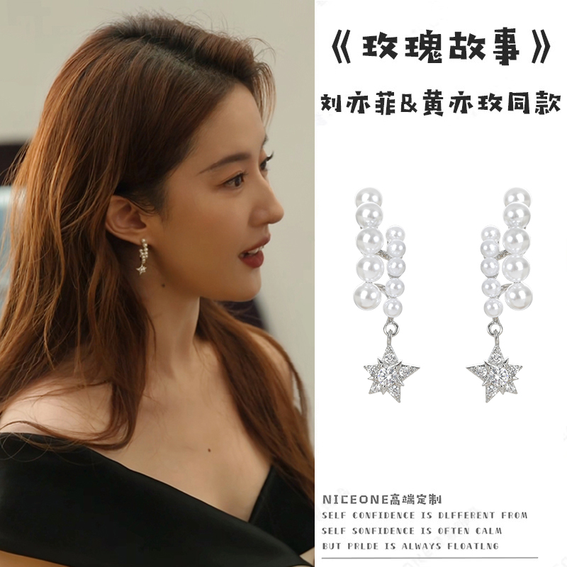 耳坠耳饰星星耳钉 故事珍珠耳夹无耳洞女长款 刘亦菲同款 耳环玫瑰
