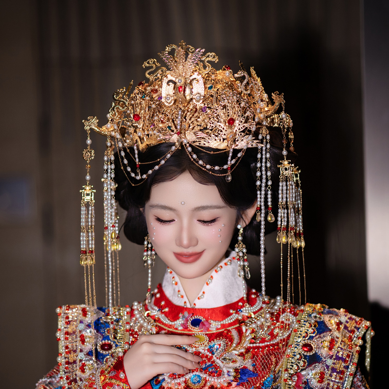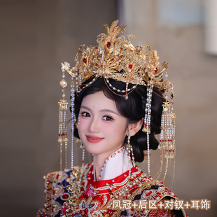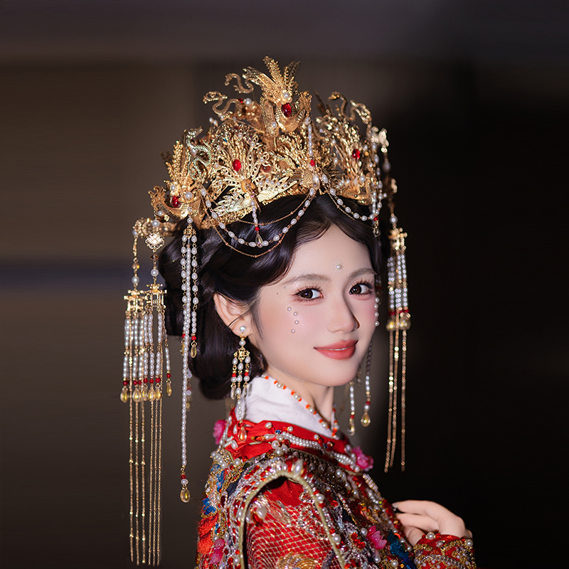 中式 新娘大气古典金色大凤冠国风造型汉服珍珠流苏婚礼华丽发饰品