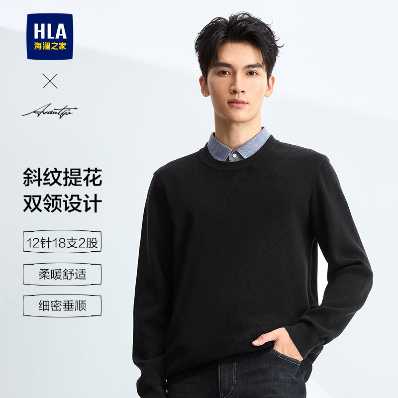 含桑蚕丝黑色打底毛衣男 25秋新款 HLA 海澜之家轻商务含羊毛针织衫
