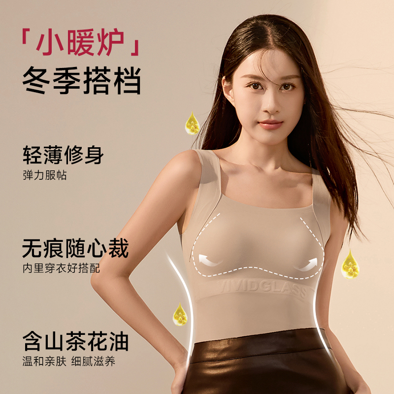 带胸垫聚拢保暖内搭背心 本草曲线一体式 香菇双十一