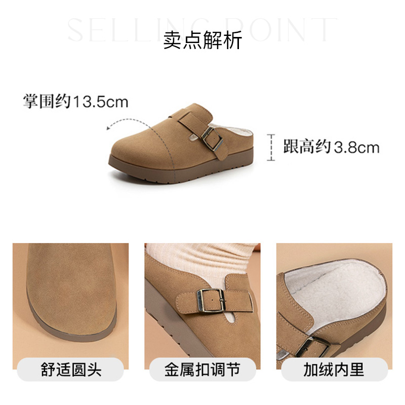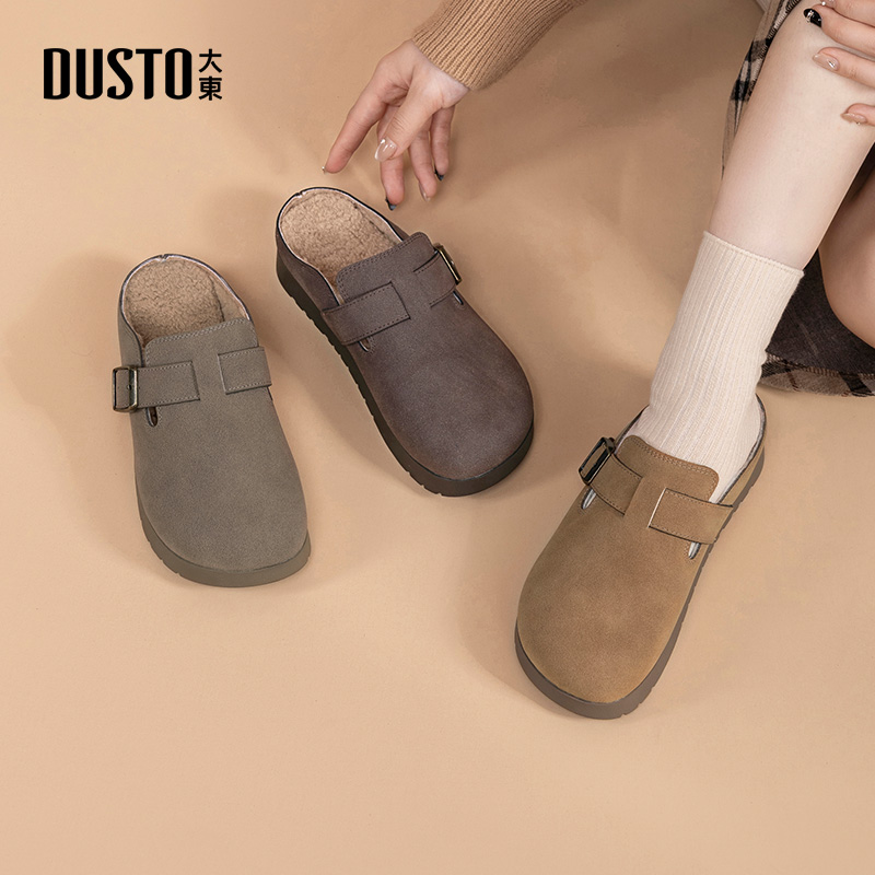 时尚 大东勃肯鞋 新款 2025冬季 休闲简约平底中跟套脚圆头0719Z 女鞋