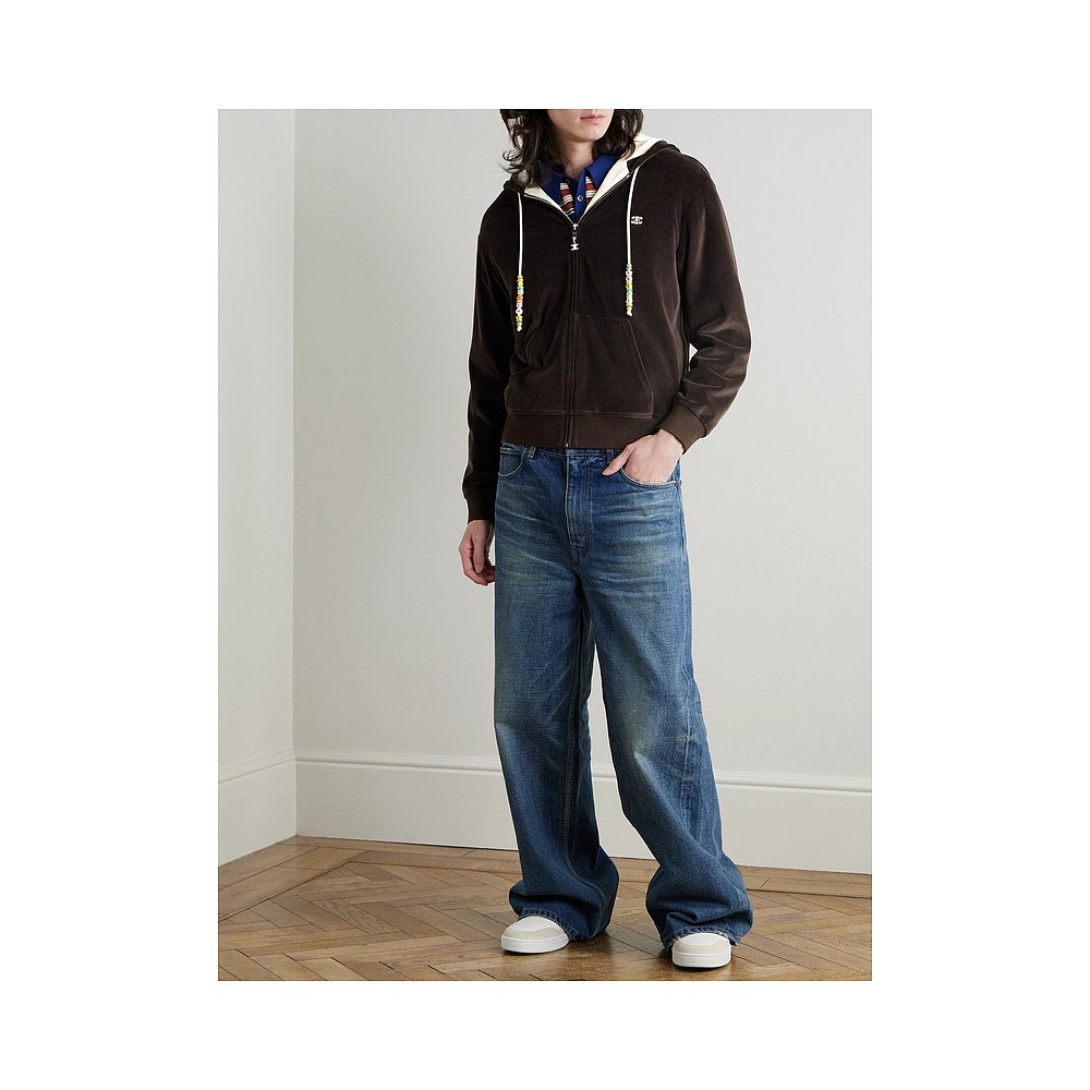 男士 1h可退 思琳 Celine 精饰Logo刺绣棉混纺天鹅绒拉链连 潮奢