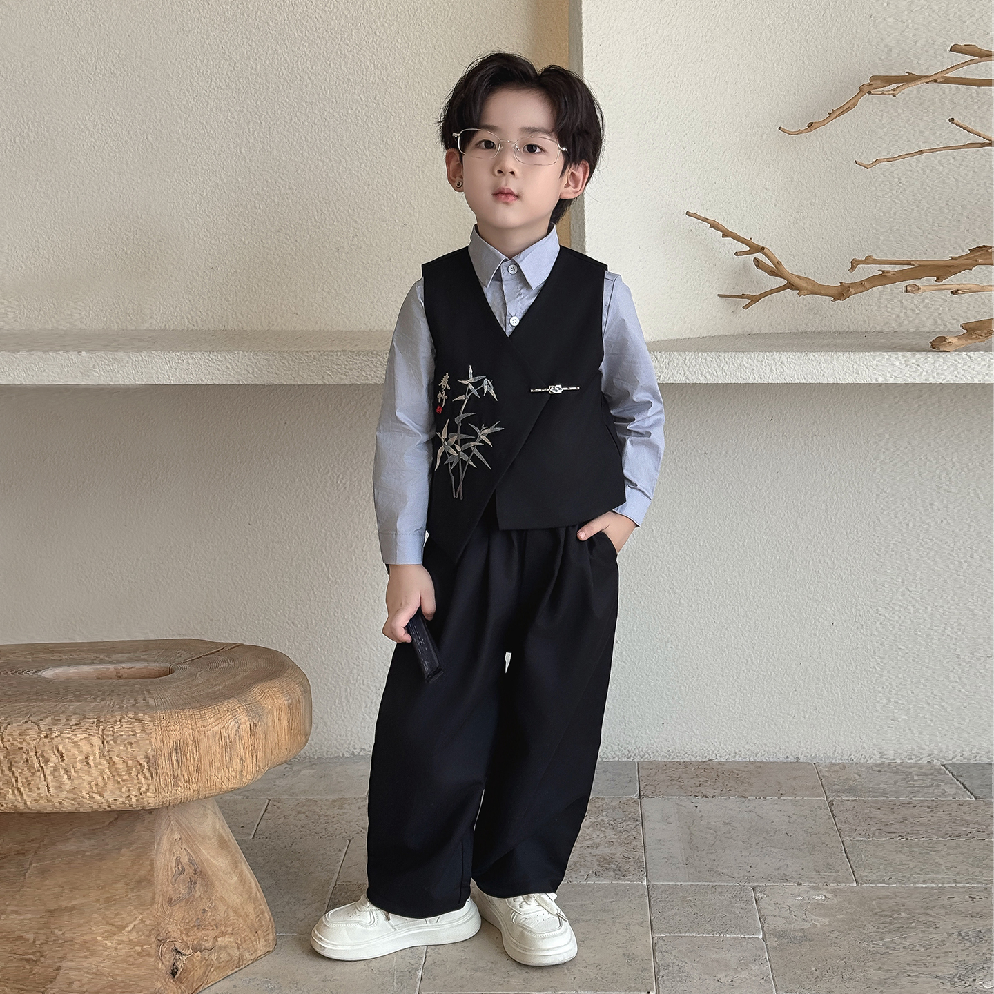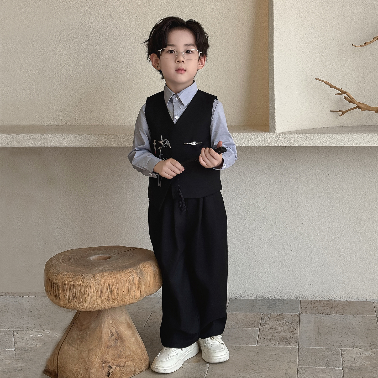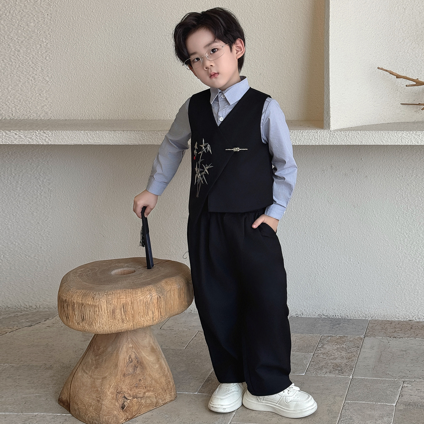 主持西服男孩花童演出 儿童新中式 男童礼服2025新款 国风小西服套装