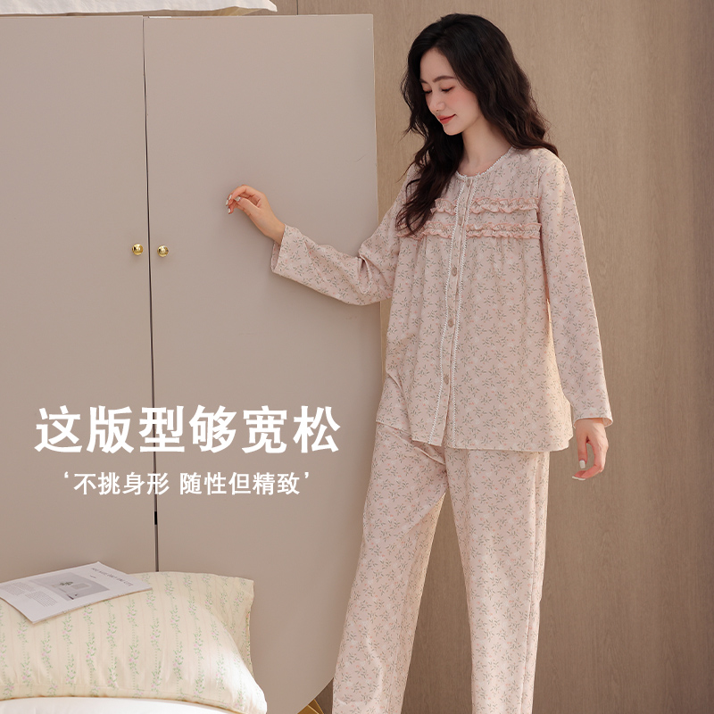 开衫 2025睡衣女春秋款 全棉薄款 秋季 可外穿秋冬妈妈家居服 纯棉长袖