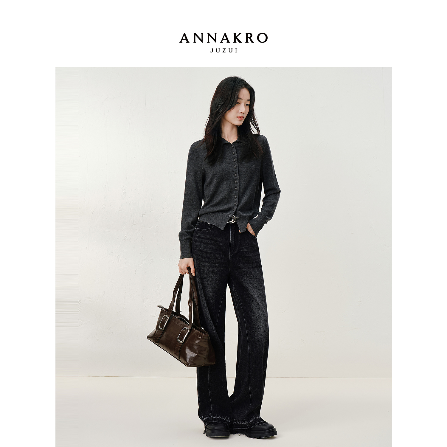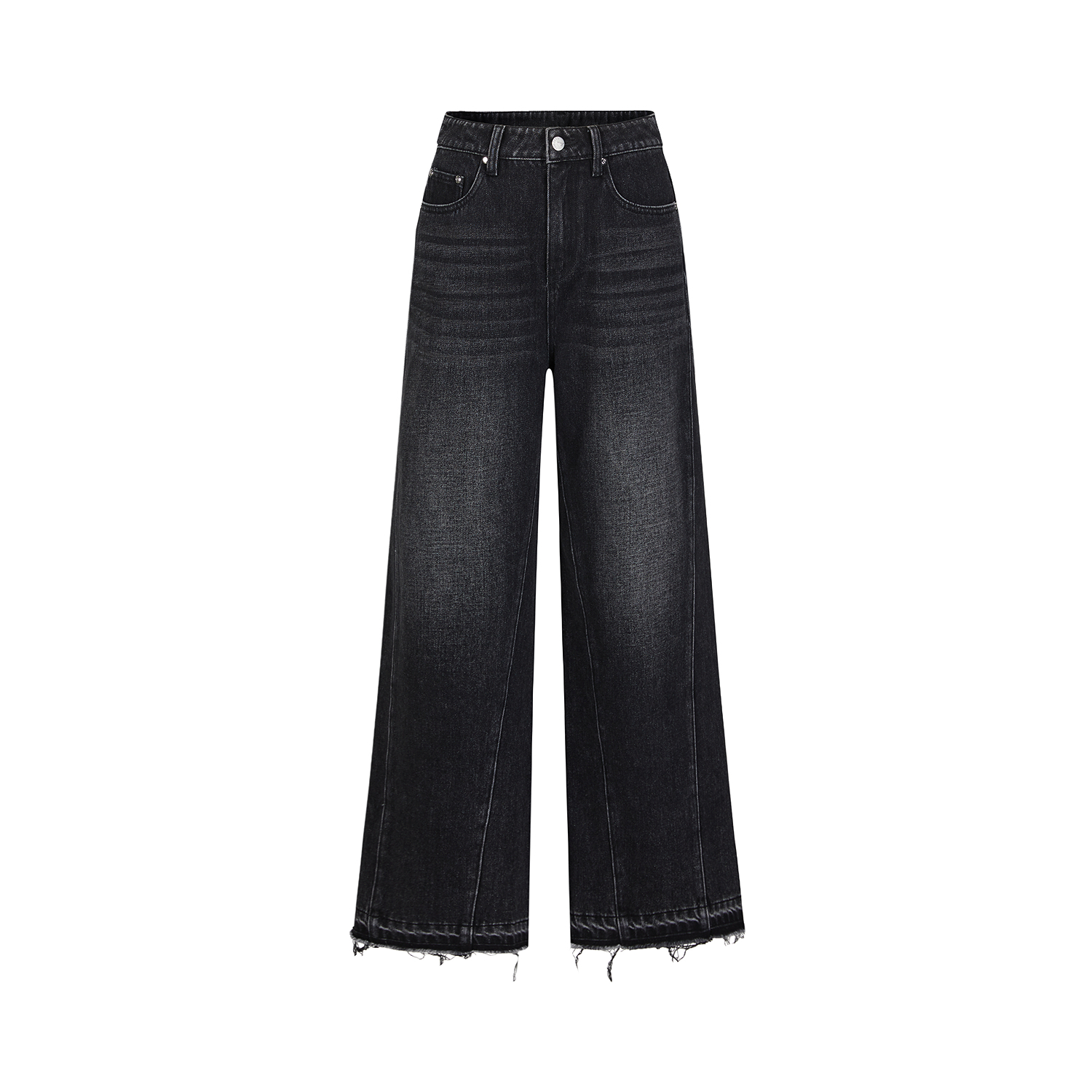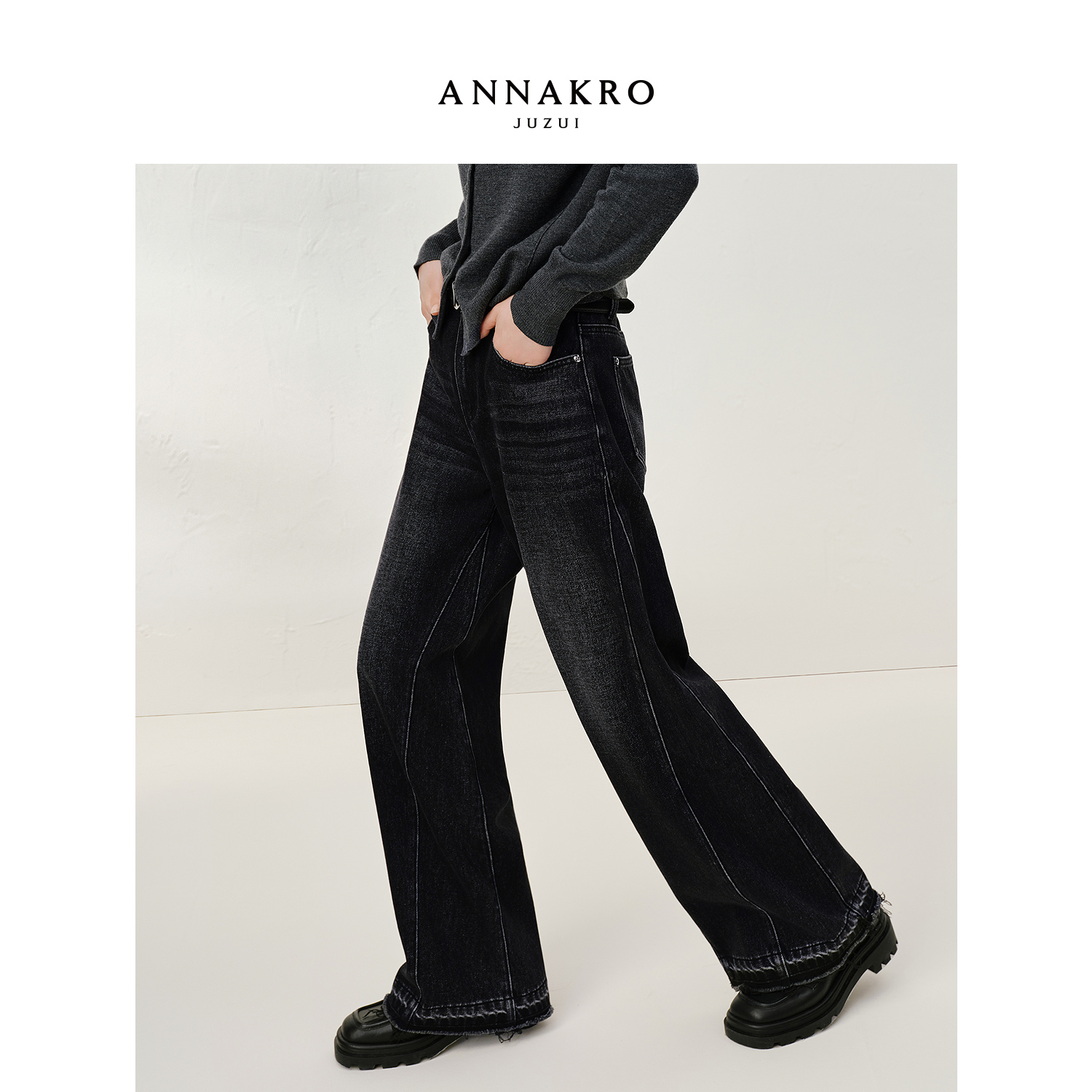 新款 女2025秋季 毛边加绒牛仔阔腿裤 玖姿安娜蔻复古丹宁风甜酷个性