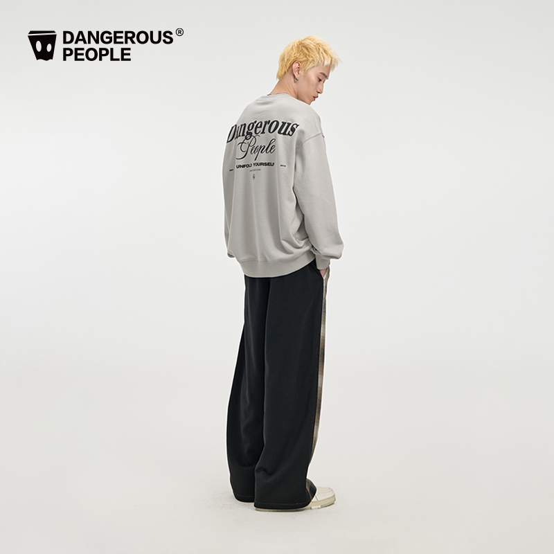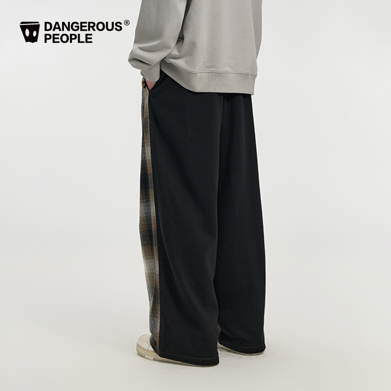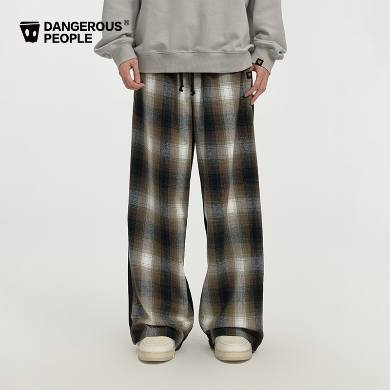 宽松潮直筒垂感长裤 Dangerouspeople薛之谦dsp拼接格纹休闲裤 秋季