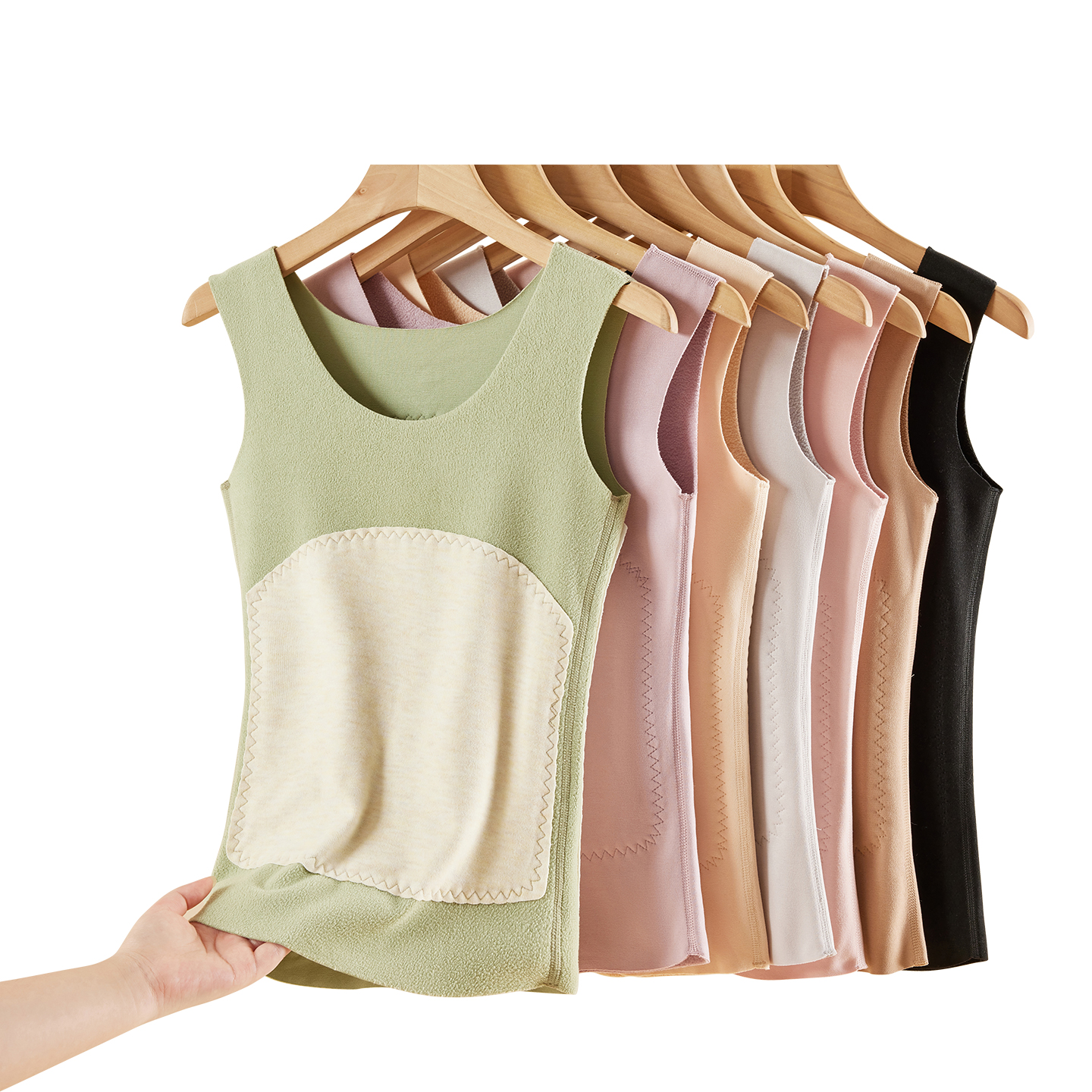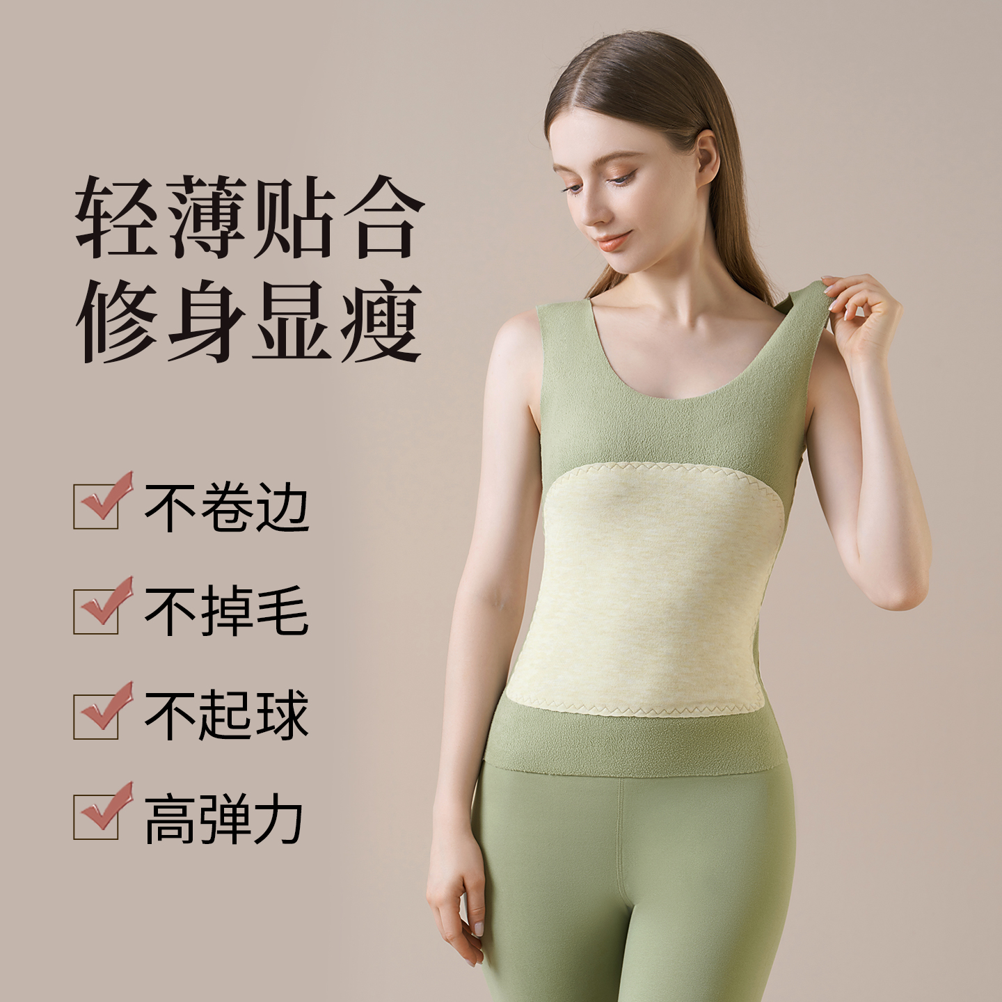 柔代羊绒蚕丝保暖背心贴片加厚无痕背心女修身 加绒打底上衣