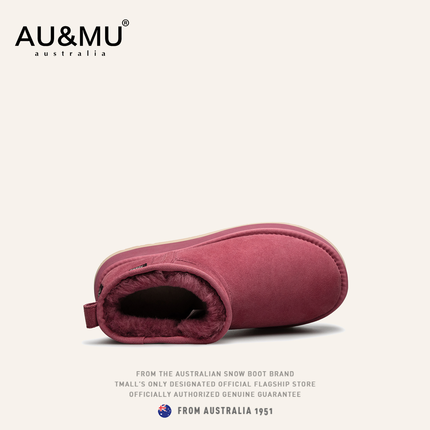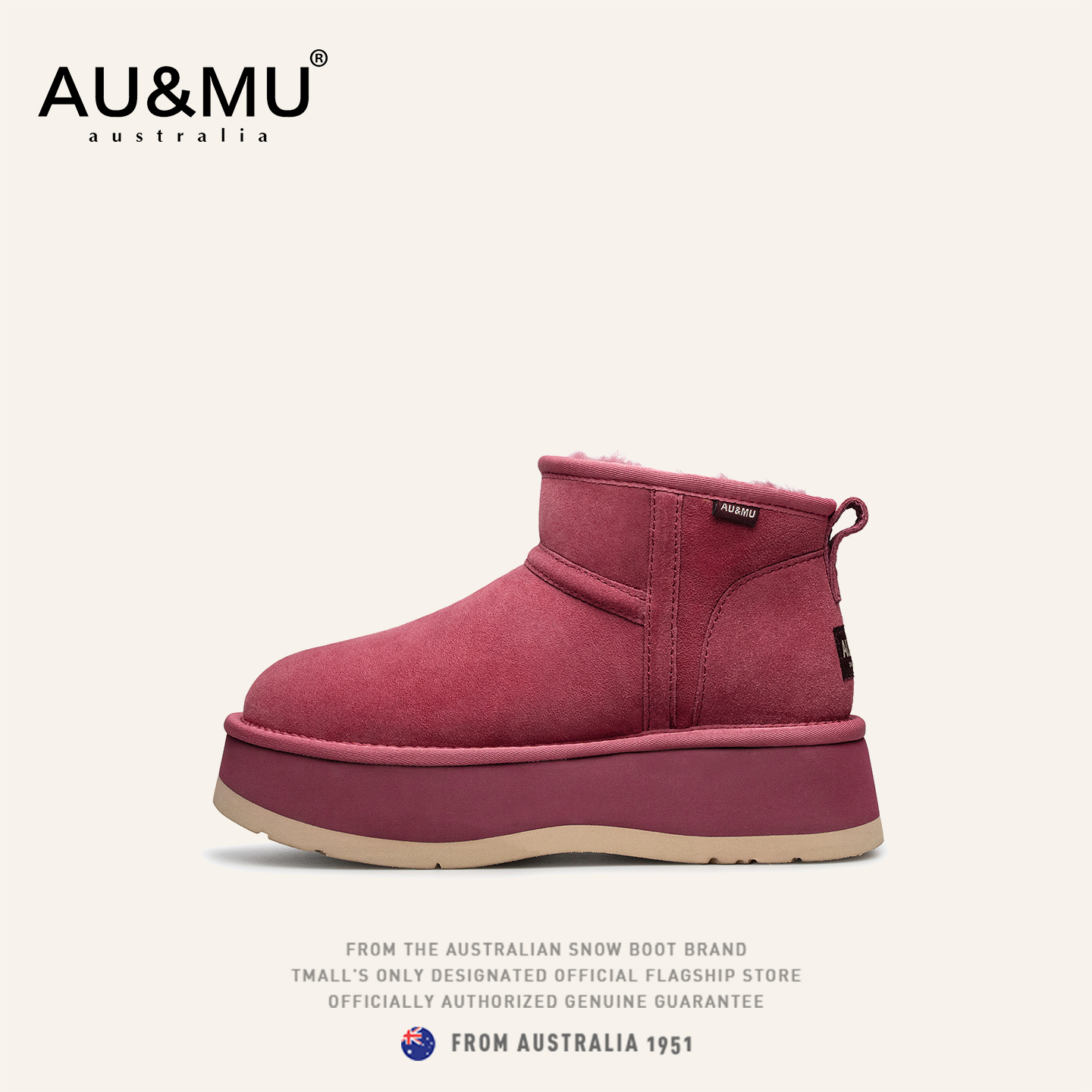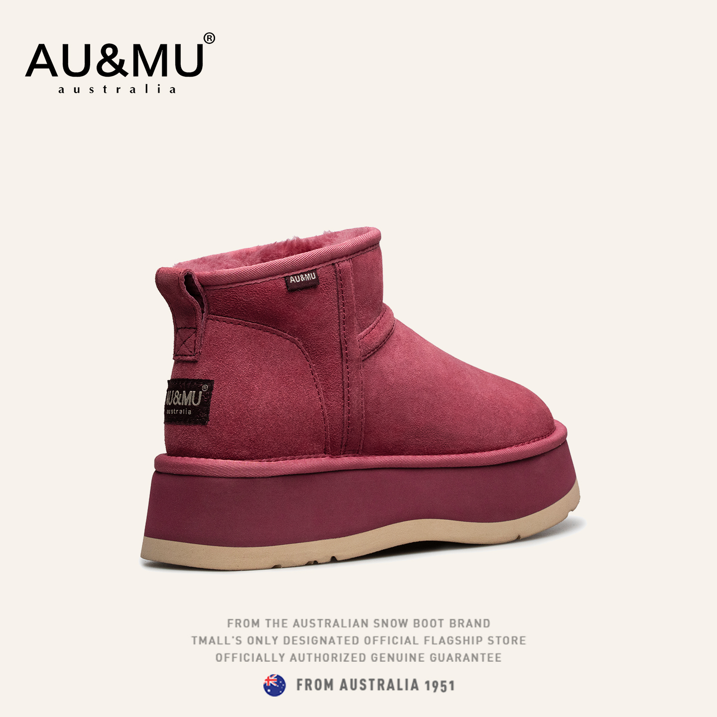 女 厚底防滑短靴棉鞋 AUMU安可拉红雪地靴2025秋冬新品 皮毛一体时尚