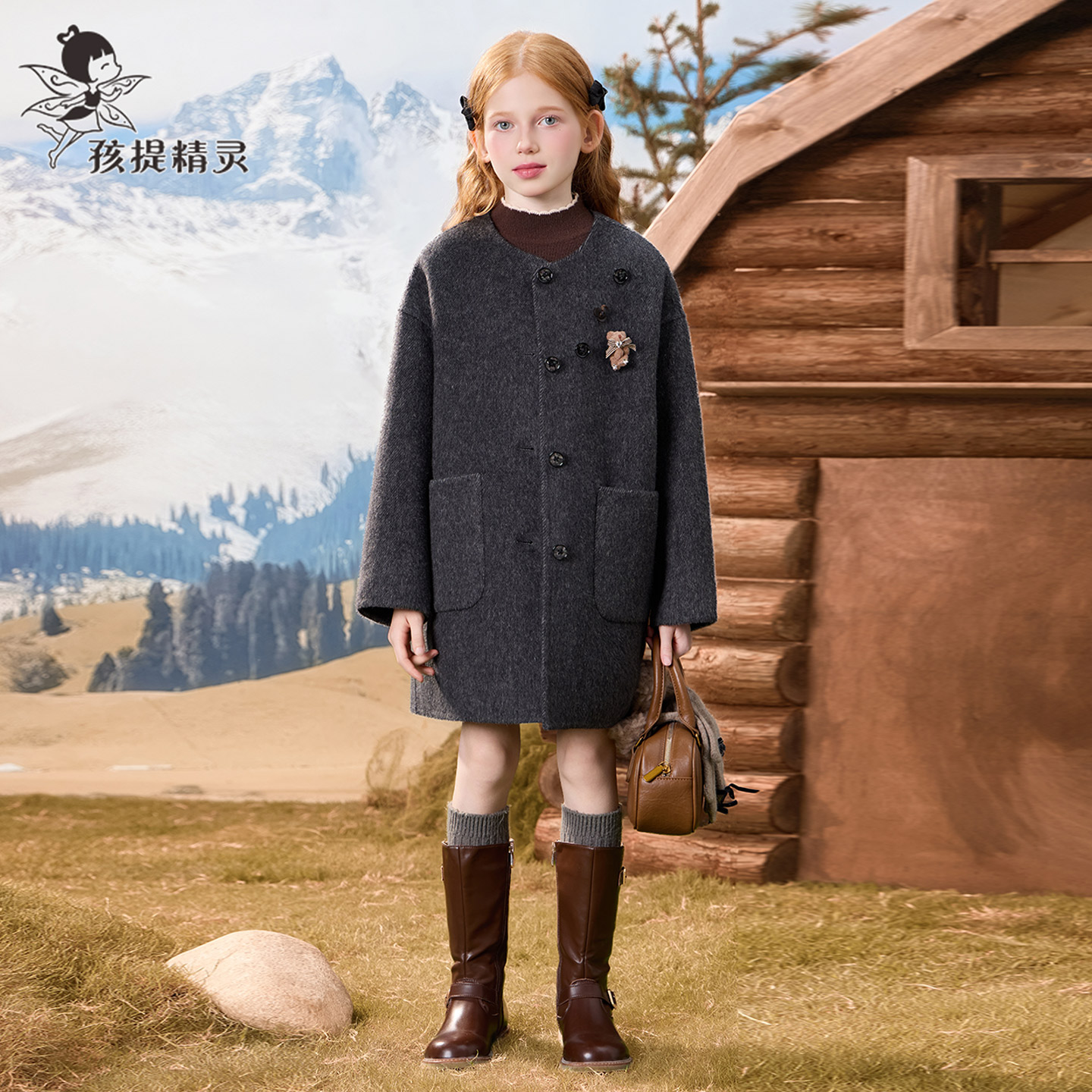 太平鸟大师甄绒系列阿尔巴卡羊驼毛传承大衣女双面呢冬新短款 外套