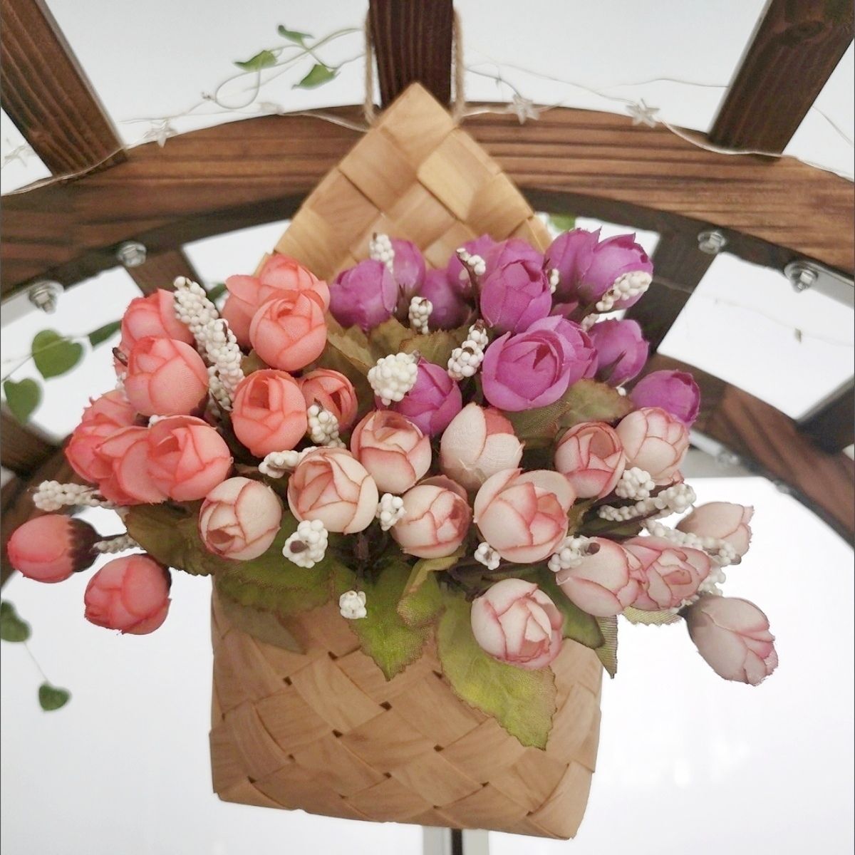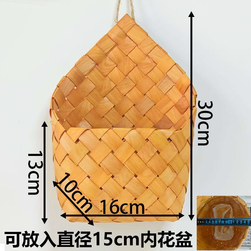 北欧编织篮田园壁挂花篮厨房姜蒜收纳筐复古手提阳台挂篮创意篮子