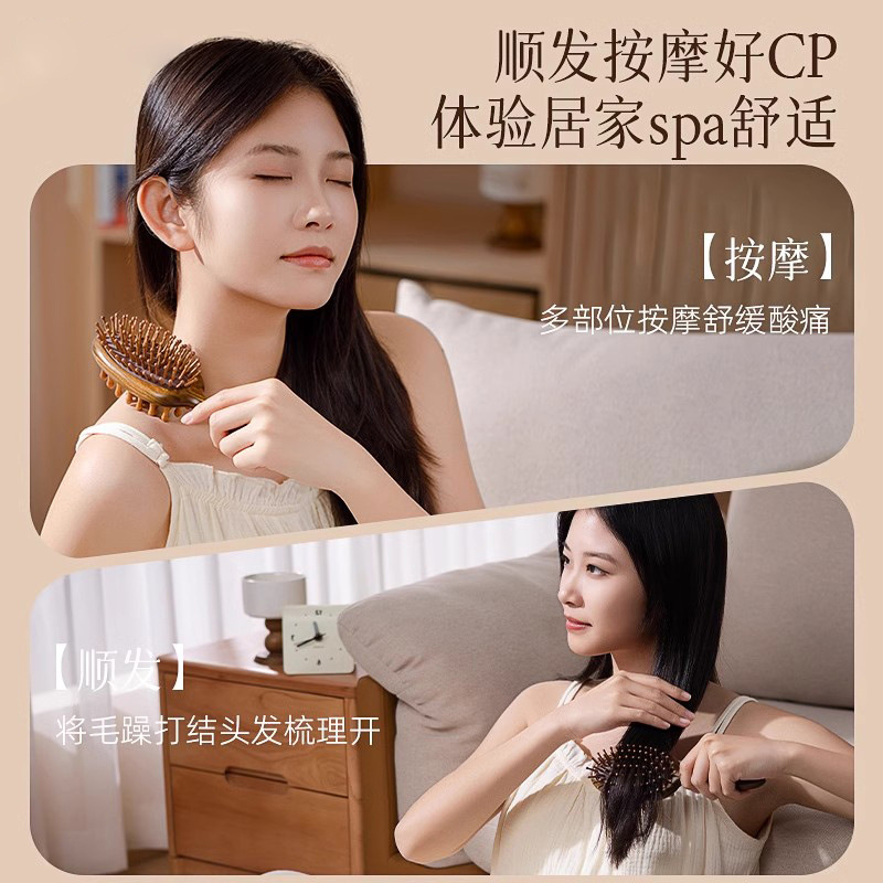 檀木按摩梳双面按摩头皮经络疏通神器女士用顺发气垫头疗家用梳子