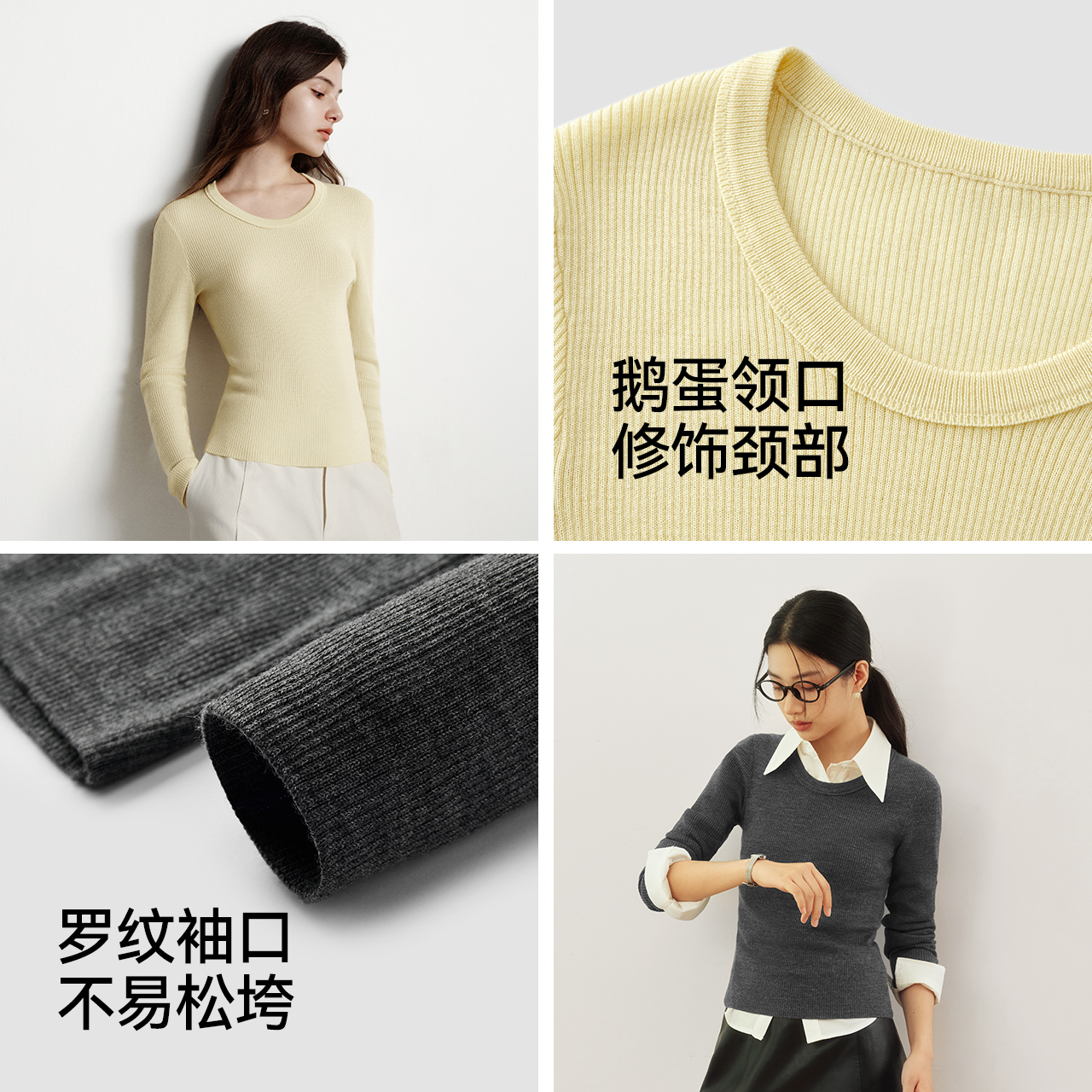 黑色打底羊毛衫 女冬鹅蛋领纯色紧身上衣2025新款 森马针织衫 森柔