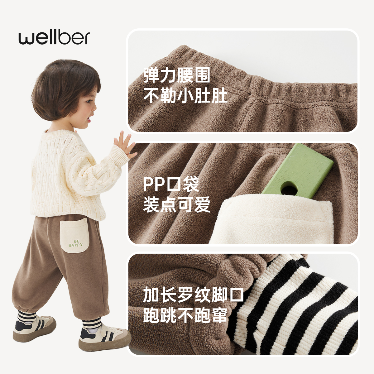 奥粒绒保暖卫裤 儿童加厚束脚裤 子秋冬2025新款 威尔贝鲁宝宝加绒裤