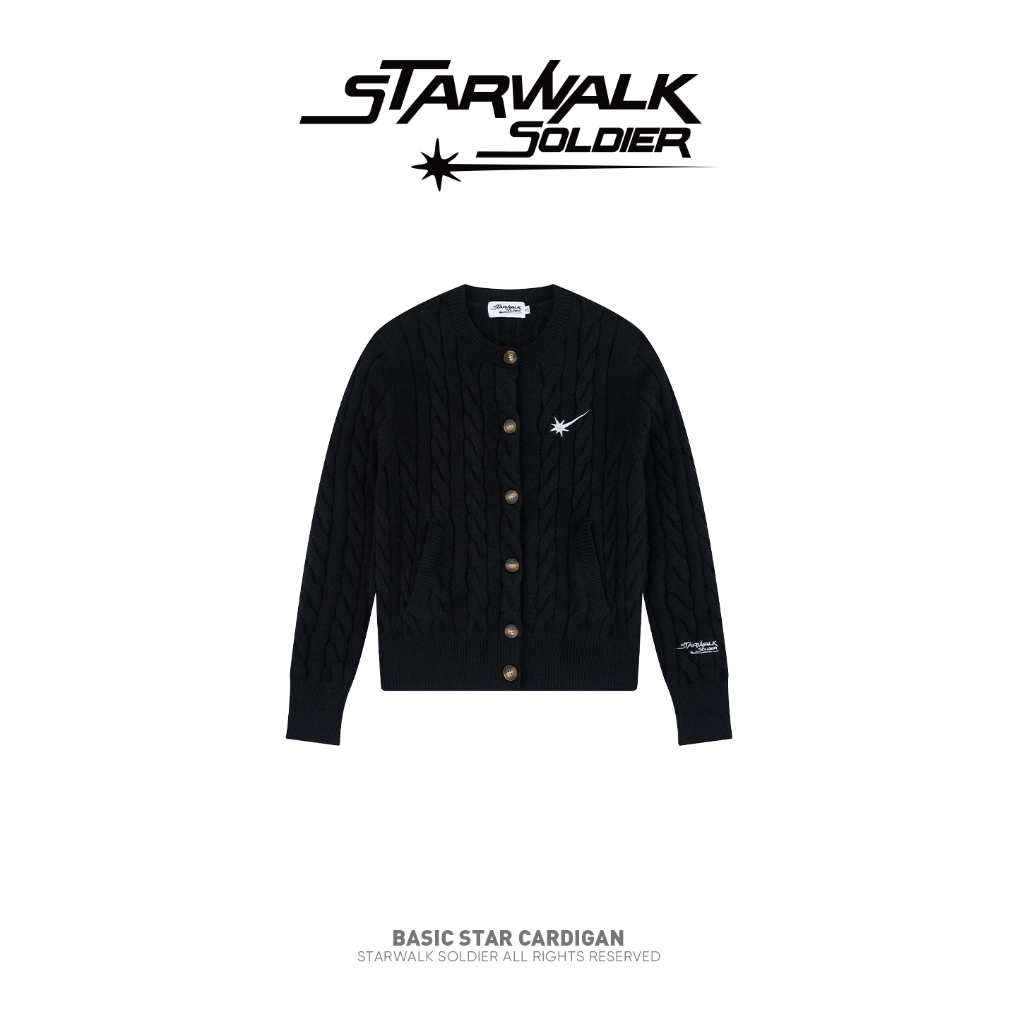 上衣 刺绣宽松慵懒毛衣外套长袖 STARWALK SOLDIER基础麻花针织开衫