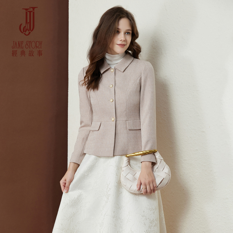 预售COCOBELLA静奢风珠片花纱毛呢外套短款 WL507 廓形小香风西装