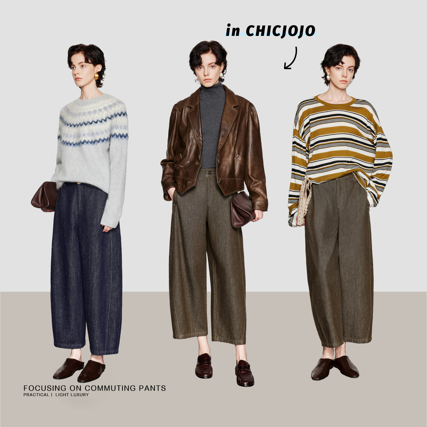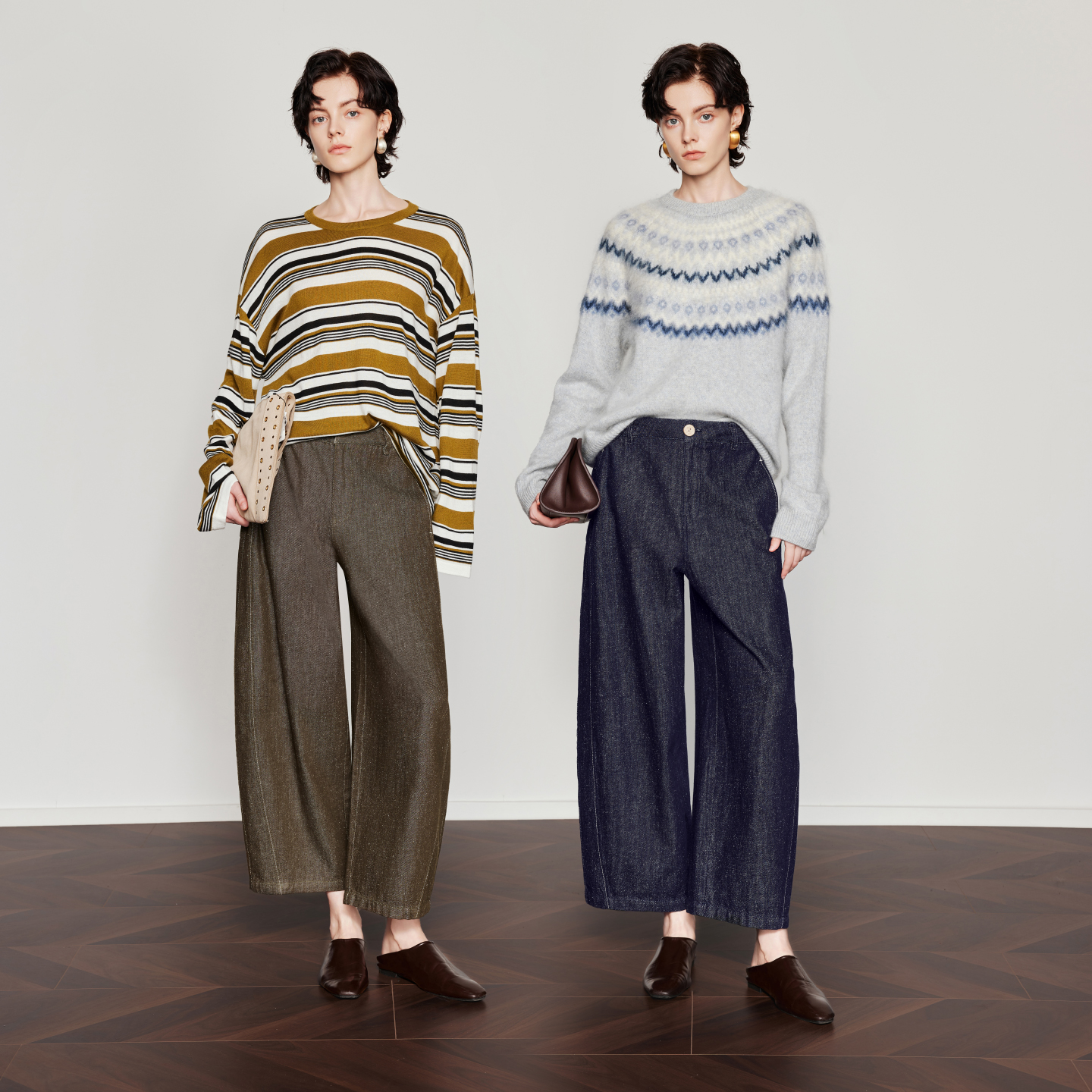 女2025年新款 子女装 秋季 复古宽松直筒阔腿裤 504791 时尚 三福牛仔裤