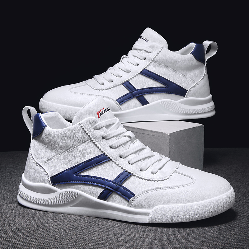 男鞋 子学生运动鞋 新款 皮面鞋 秋冬高帮休闲鞋 电池熊猫鸿星尔克板鞋