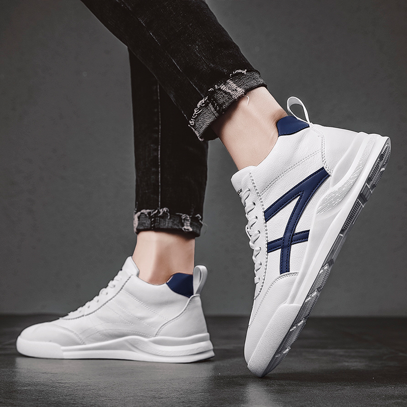 运动鞋 高帮休闲鞋 秋冬新款 子学生厚底男鞋 皮面鞋 征服鸿星尔克板鞋